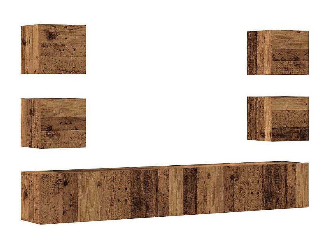 Conjunto de mueble de TV 6 piezas montado la pared madera vieja