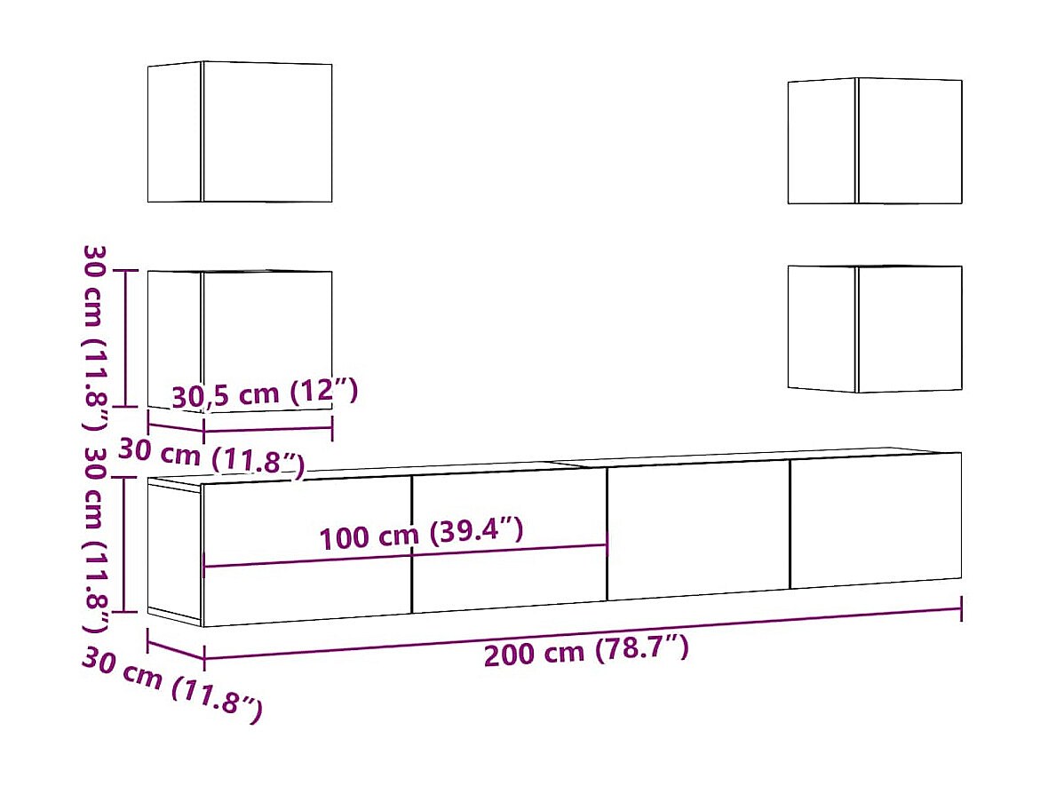 Conjunto de mueble de TV 5 piezas montado la pared madera vieja