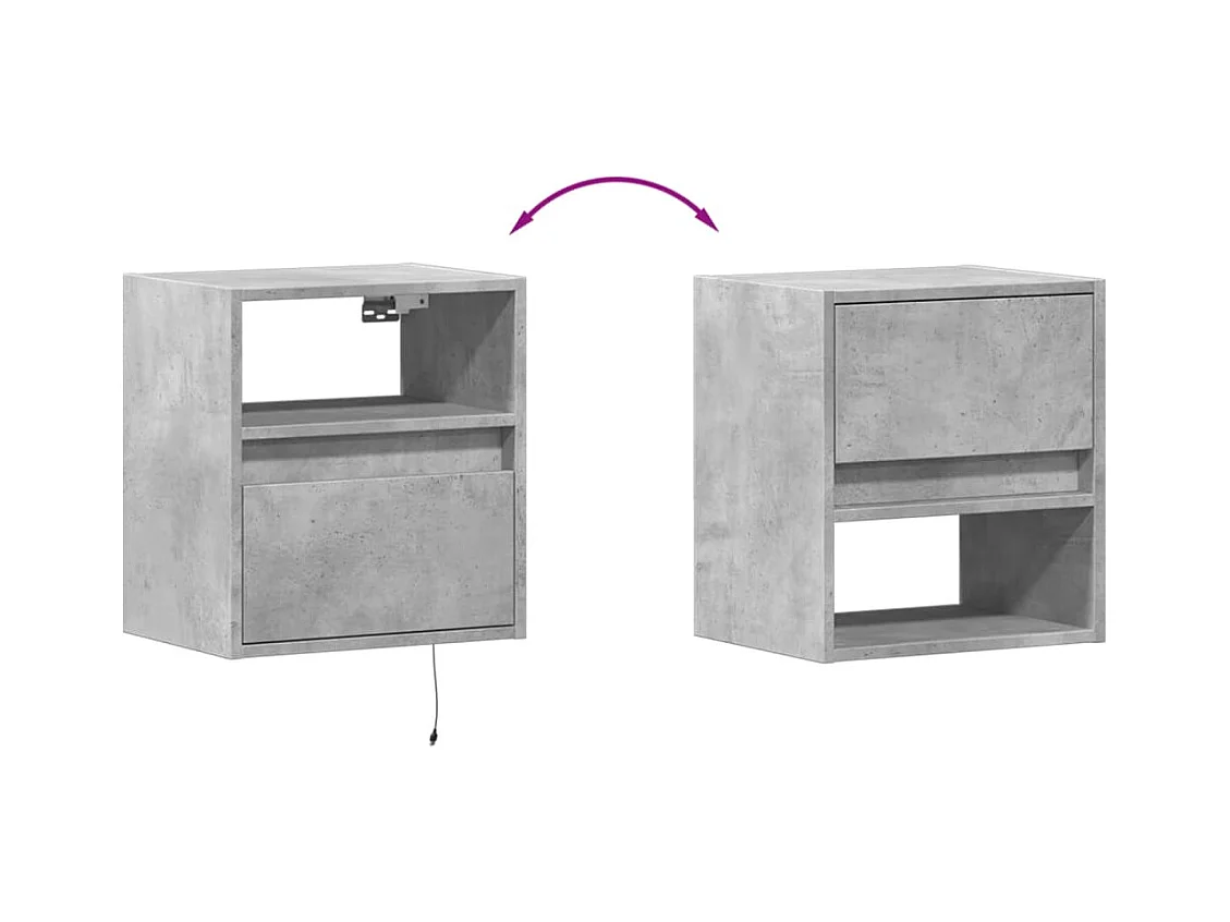 Mueble de TV de pared con luces LED, gris hormigón, 41x31x45 cm