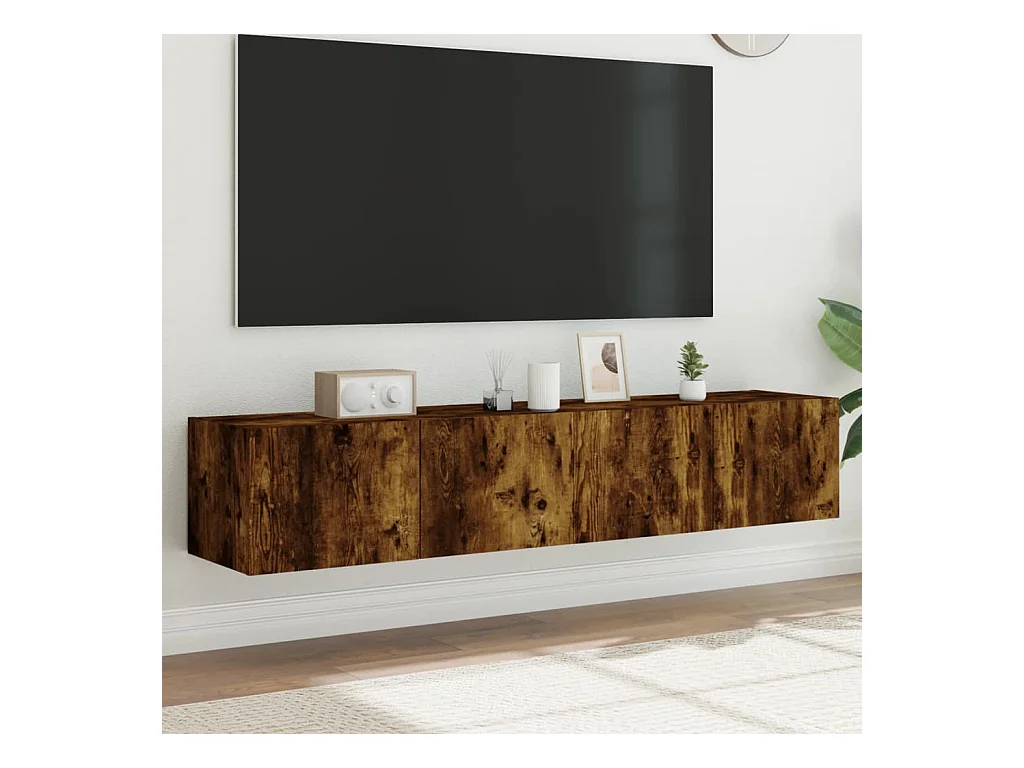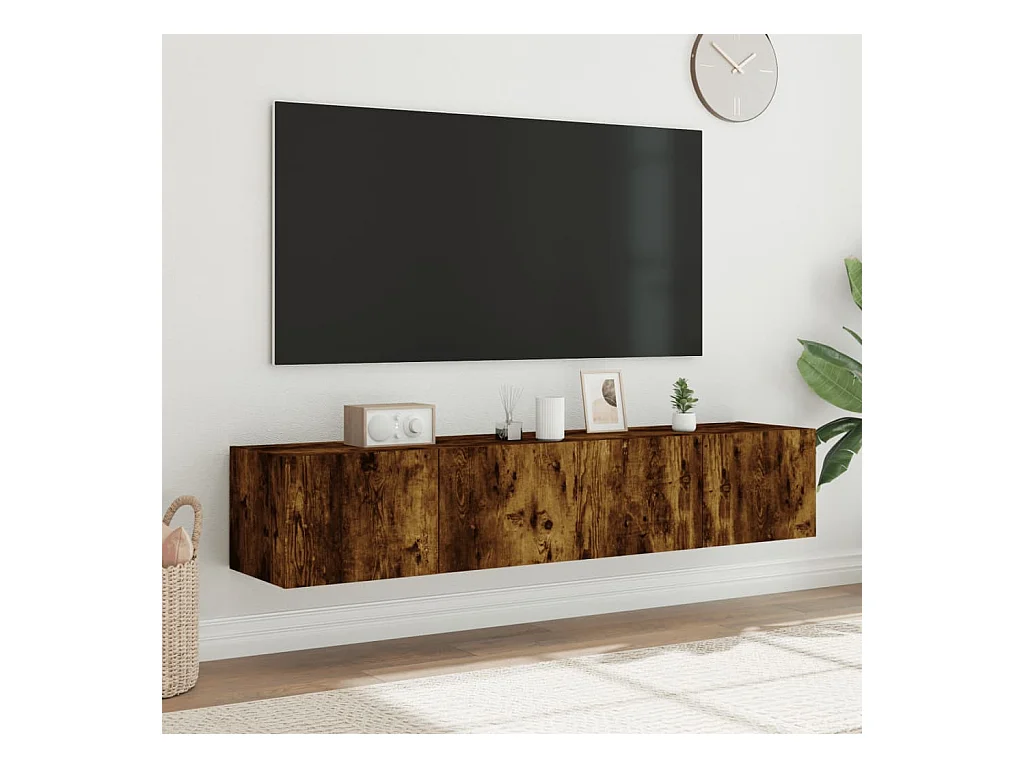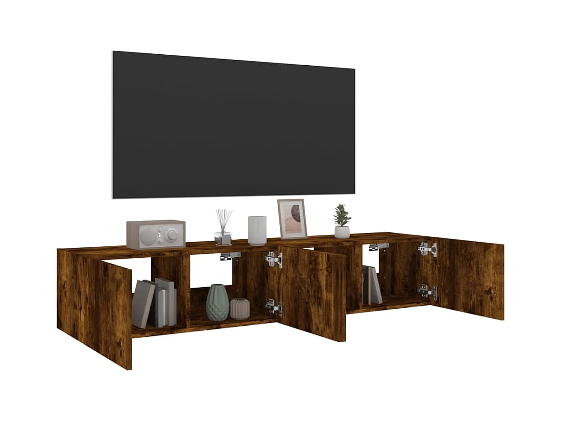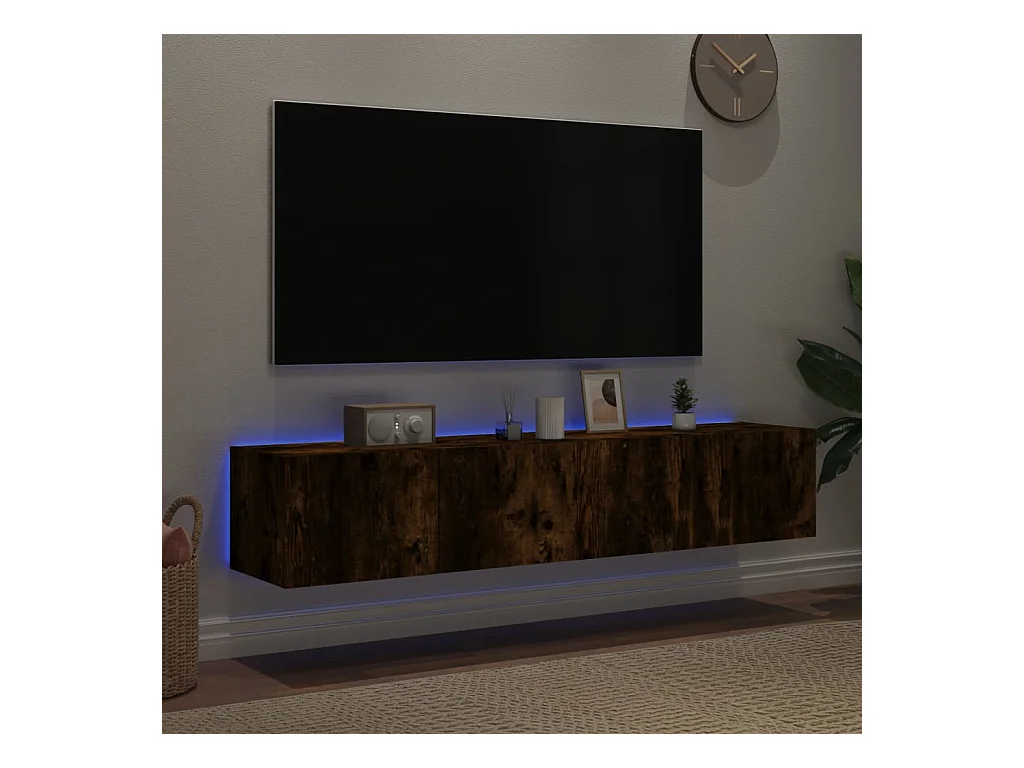 Muebles de TV de pared con luces LED 2 piezas roble ahumado 80x35x31 cm