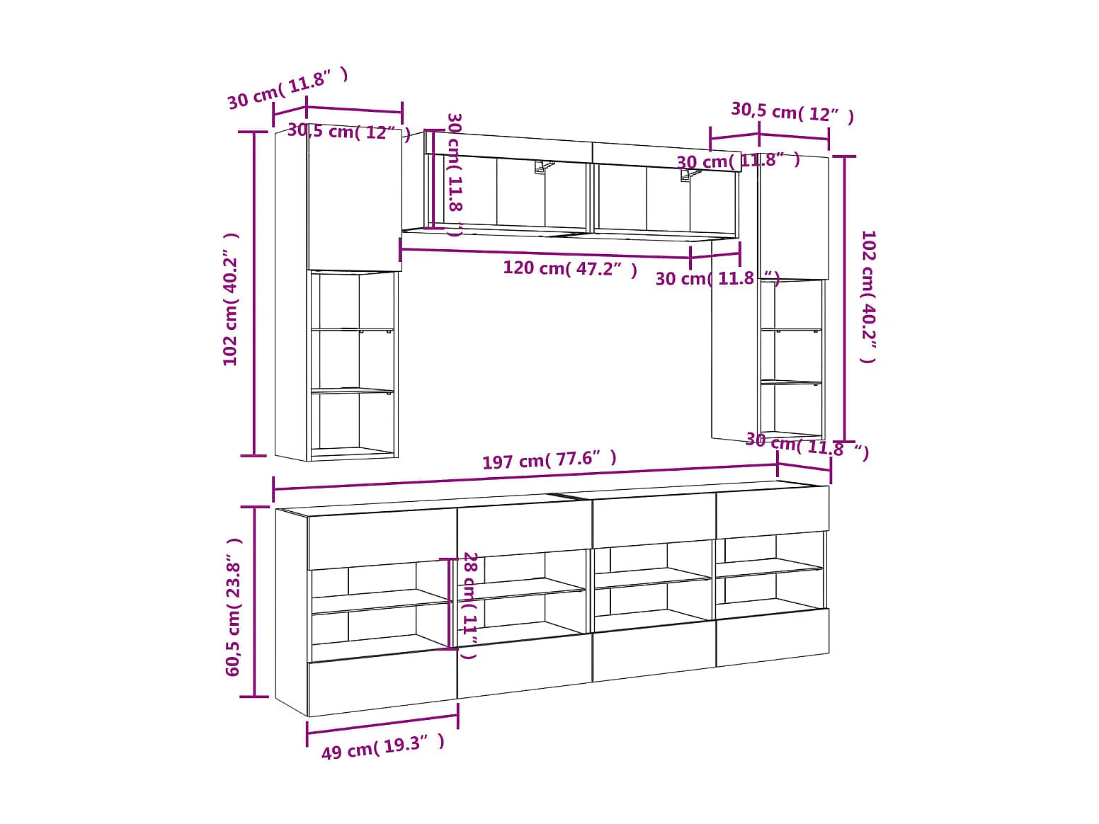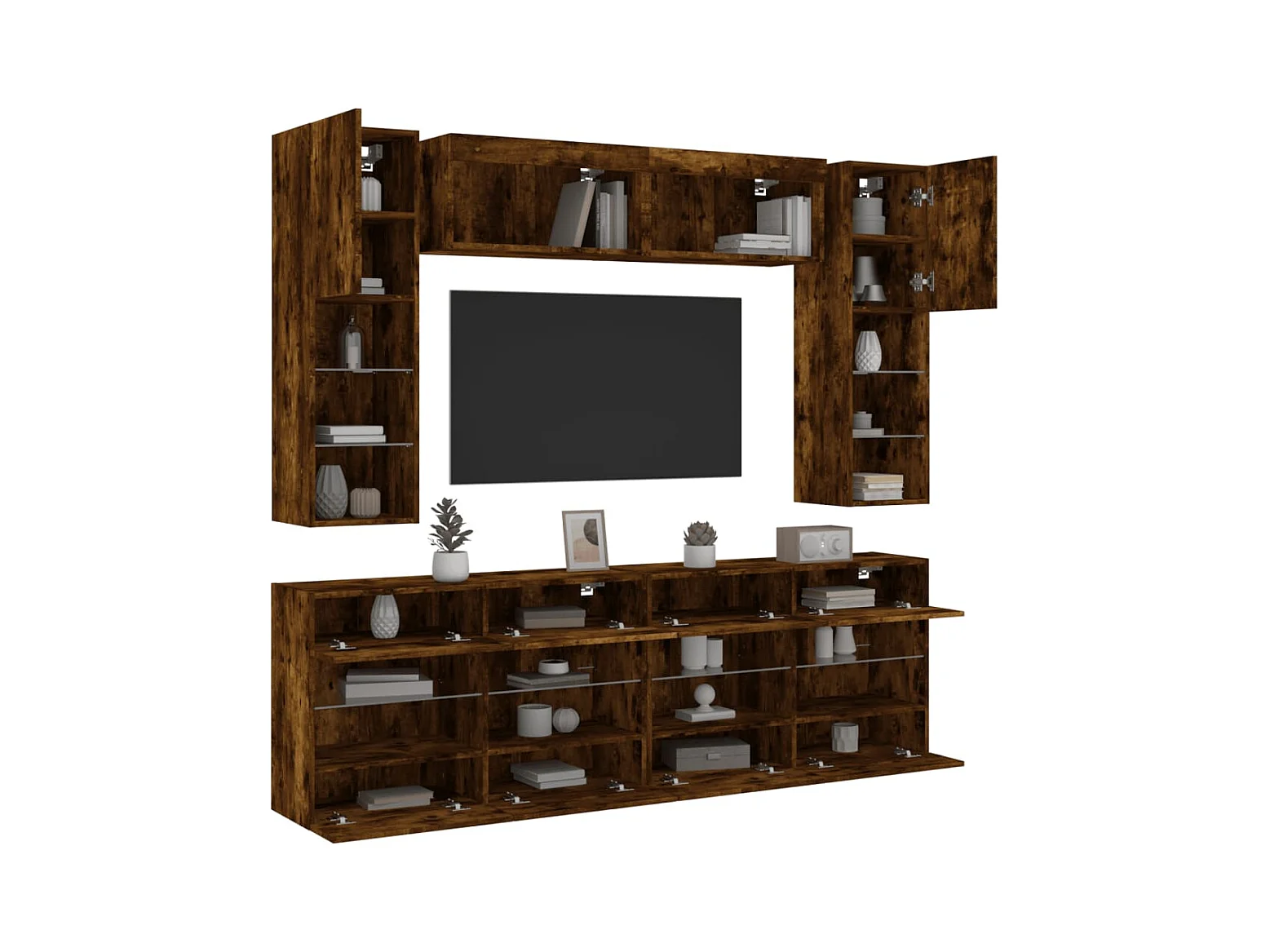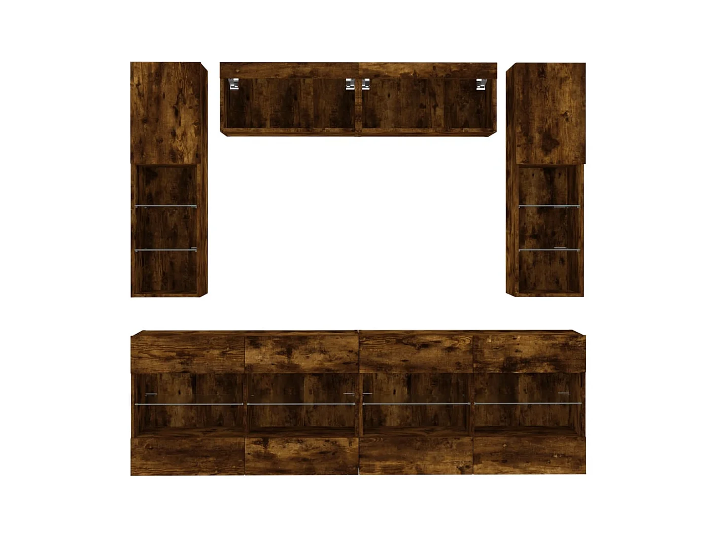Muebles TV pared con LED 6 pzas madera ingeniería roble ahumado
