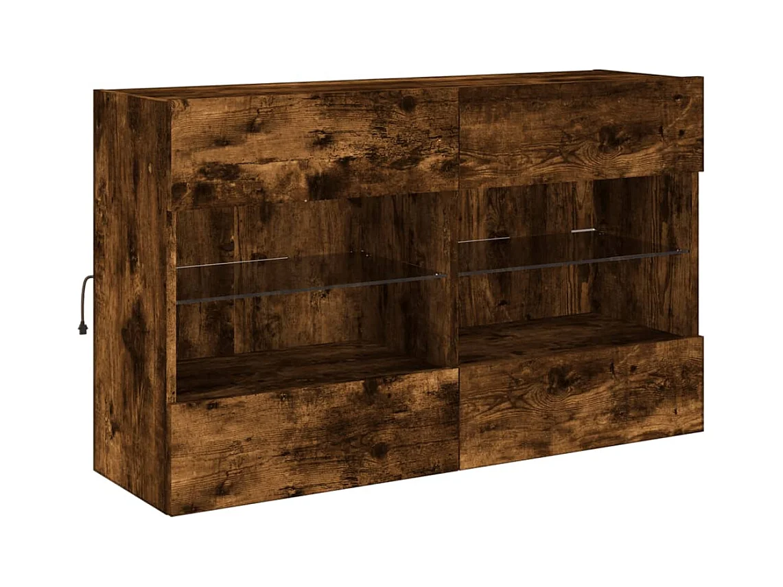 Muebles de TV con luces LED 2 uds roble ahumado 30,5x30x90 cm