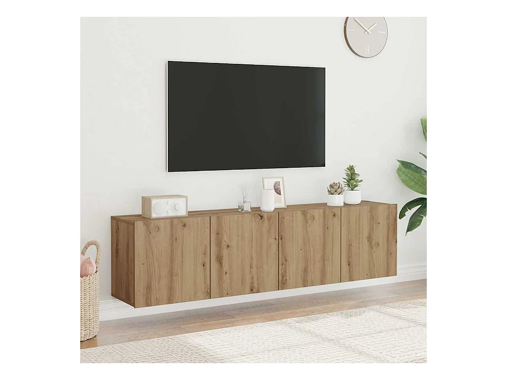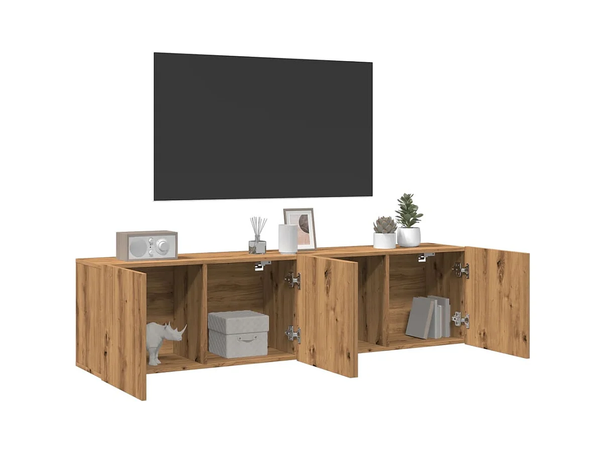 Muebles de TV de pared de 2 piezas, roble hecho a mano, 80x30x41 cm