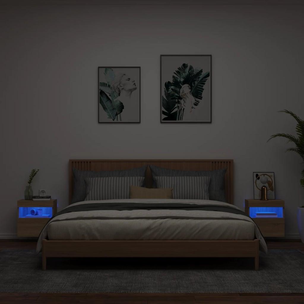 Muebles de TV de pared luces LED 2 uds roble Sonoma 40x30x40 cm