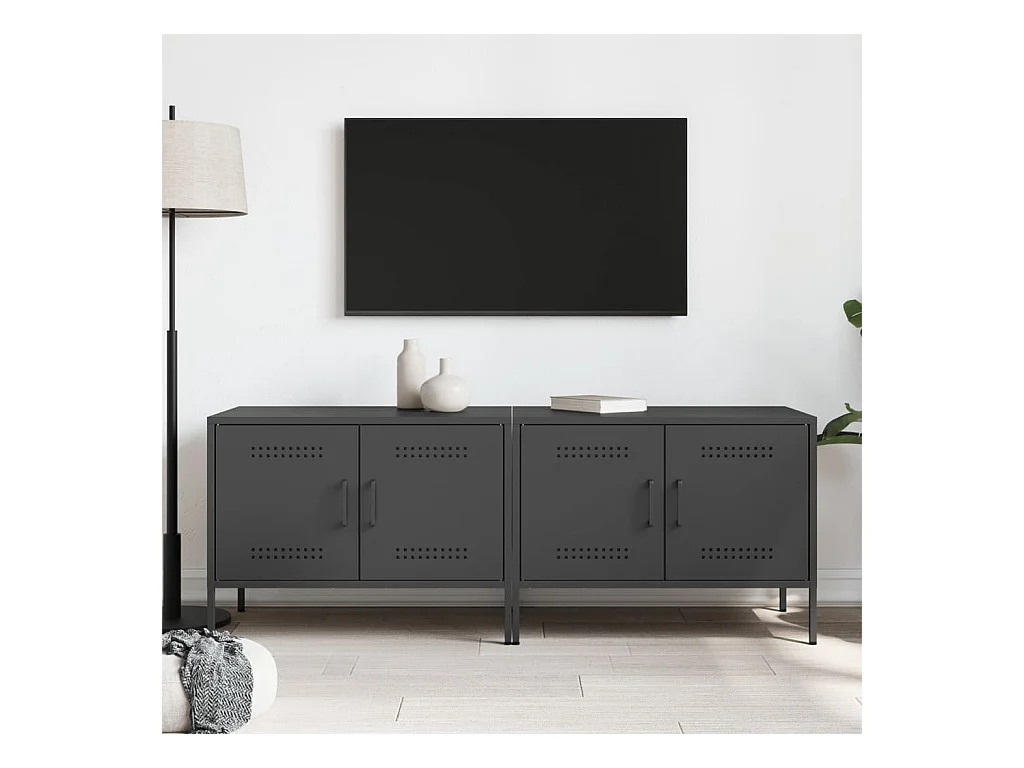 Mueble para TV | Gabinete de TV | Mueble de salón acero laminado en frío negro 68x39x43,5 cm