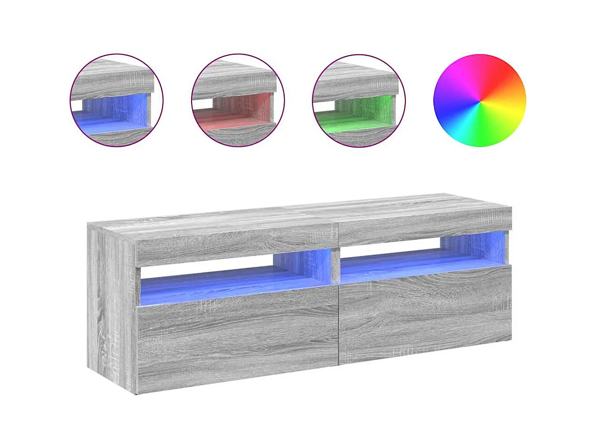 Mueble de TV | Mueble de salón de pared con luces LED gris Sonoma 60x30x40 cm