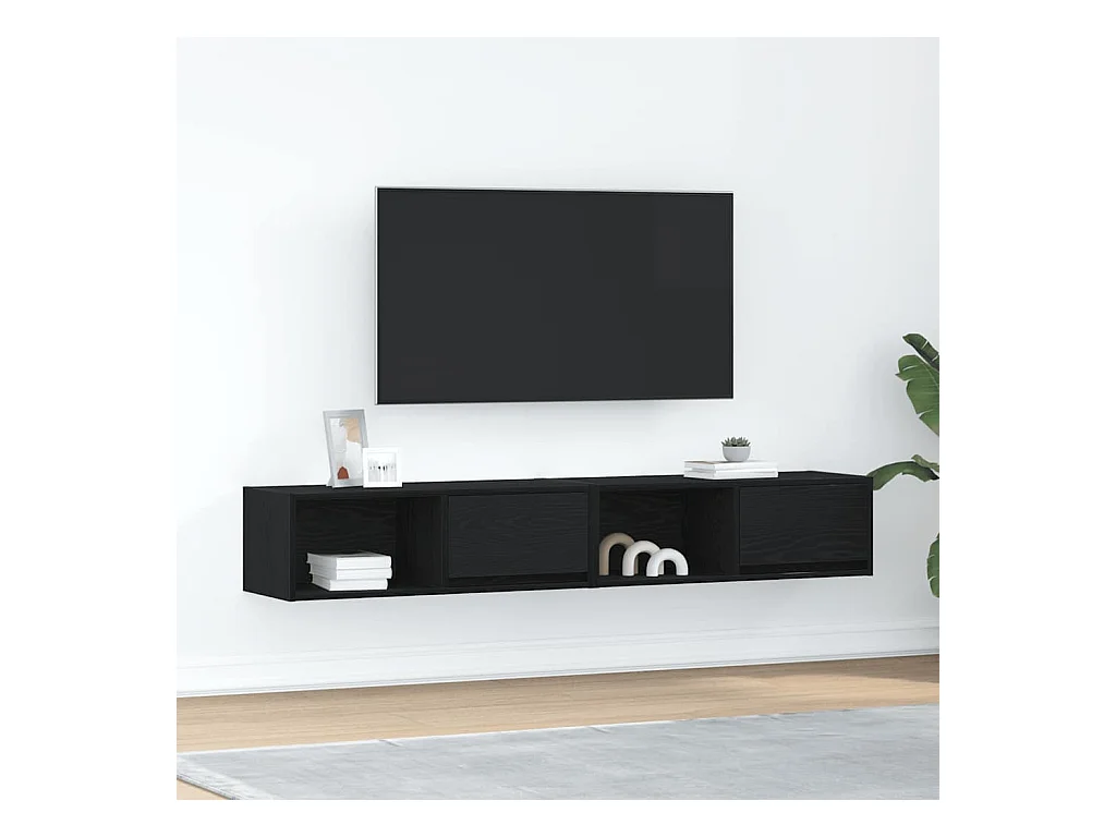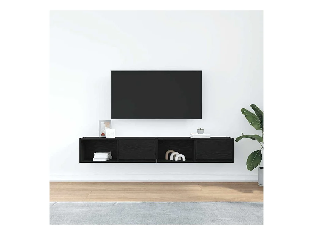 Muebles de TV | Gabinetes de TV | Muebles de salón 2 uds Roble Negro 80x31x25,5 cm Madera ingeniería