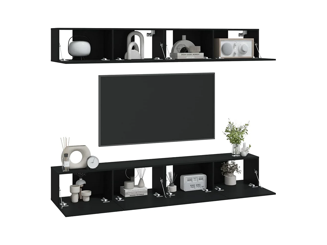 Muebles de TV | Gabinetes de TV | Muebles de salón 4 piezas negro 100x30x30 cm