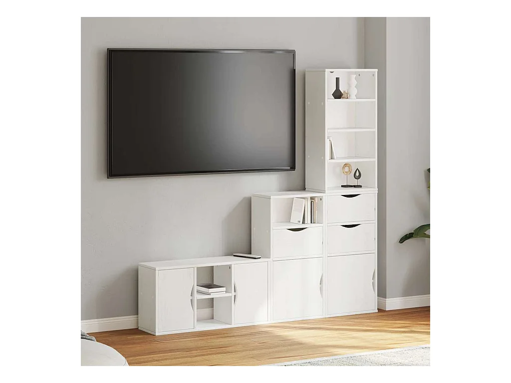 Muebles de TV | Gabinetes de TV | Muebles de salón 4 uds. con almacenaje "ODDA" blanco madera pino