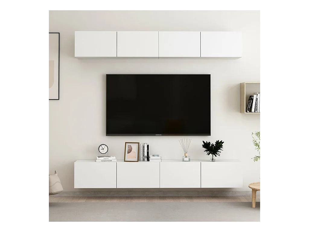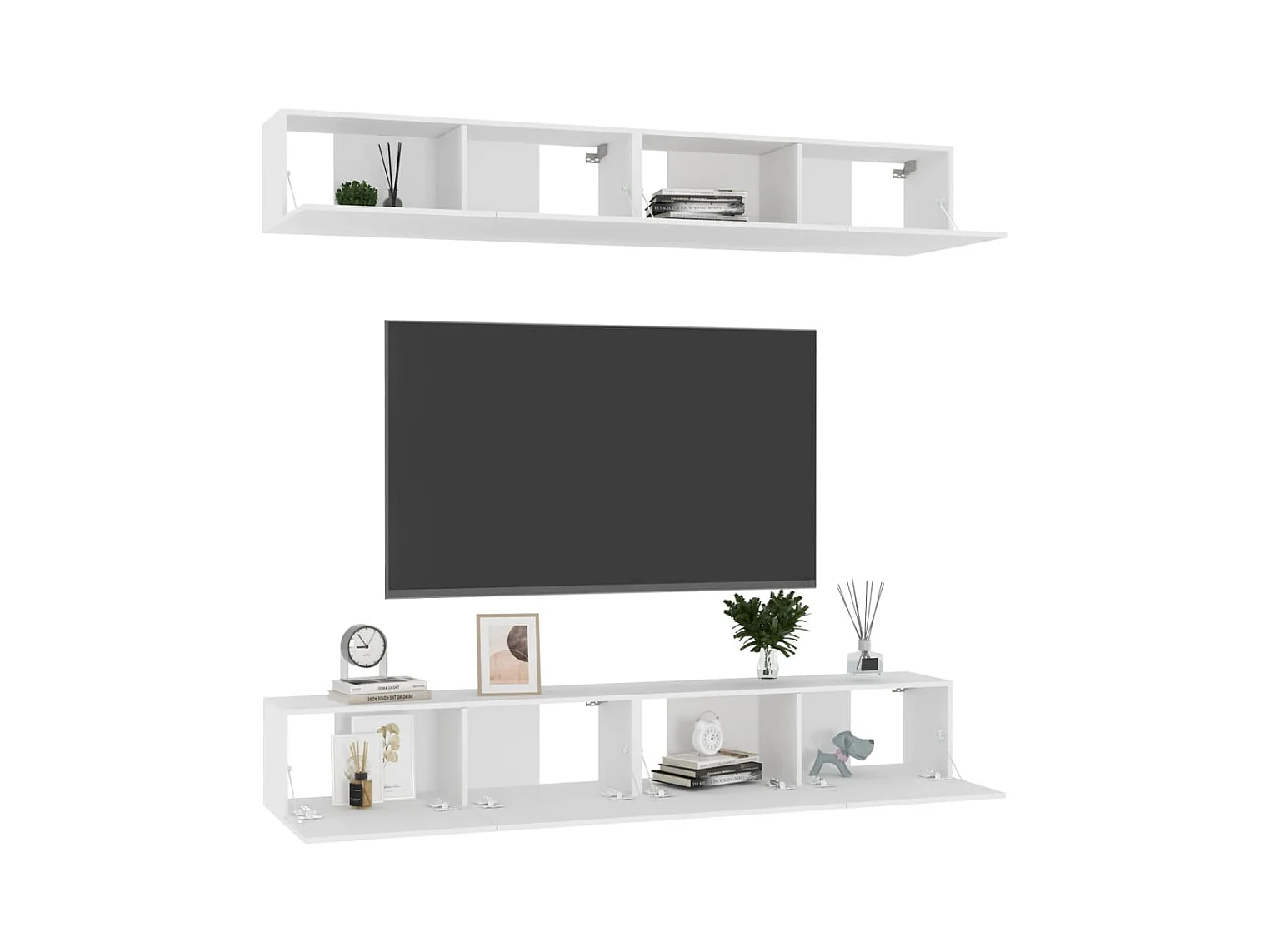Set de muebles para TV | Gabinetes de TV | Muebles de salón 4 piezas madera contrachapada blanco