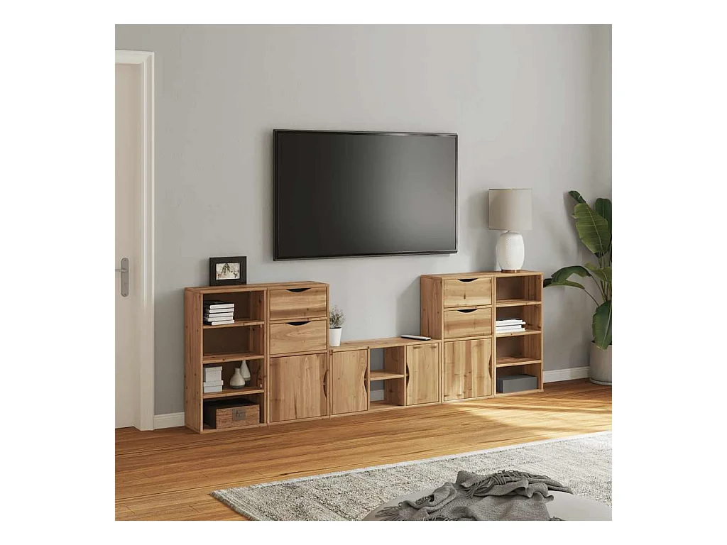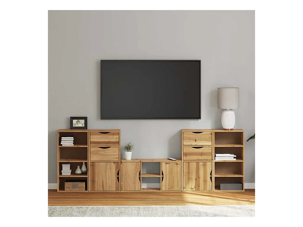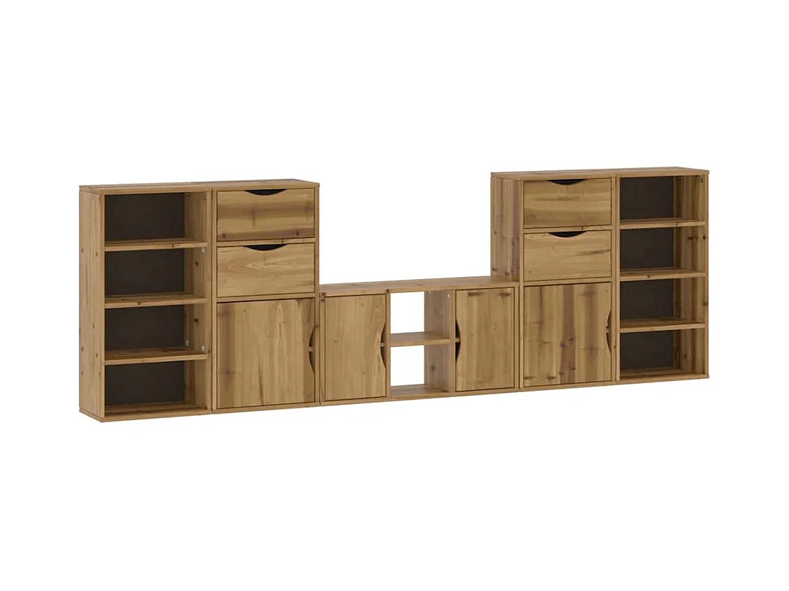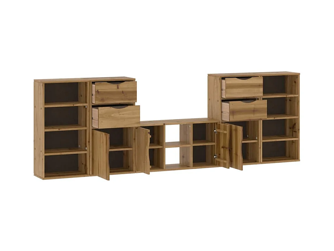 Muebles de TV | Gabinetes de TV | Muebles de salón 5 uds. con almacenaje "ODDA" madera maciza pino