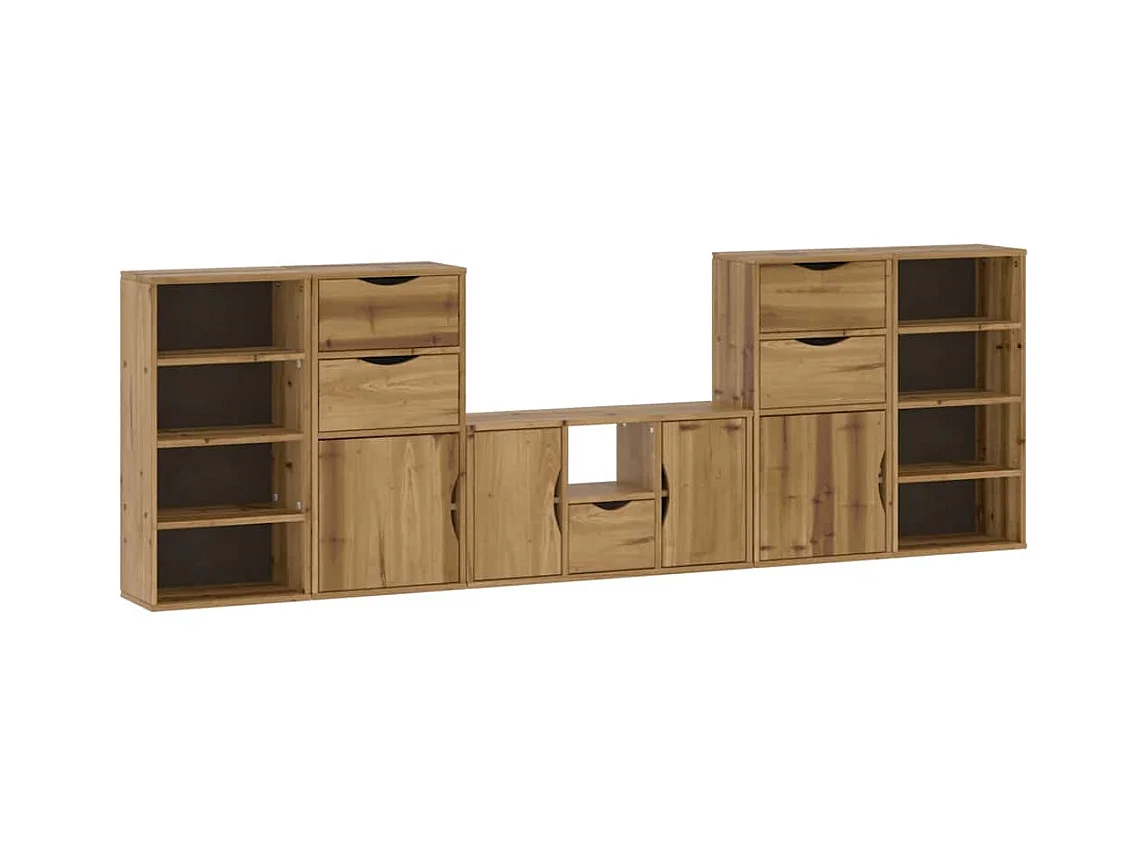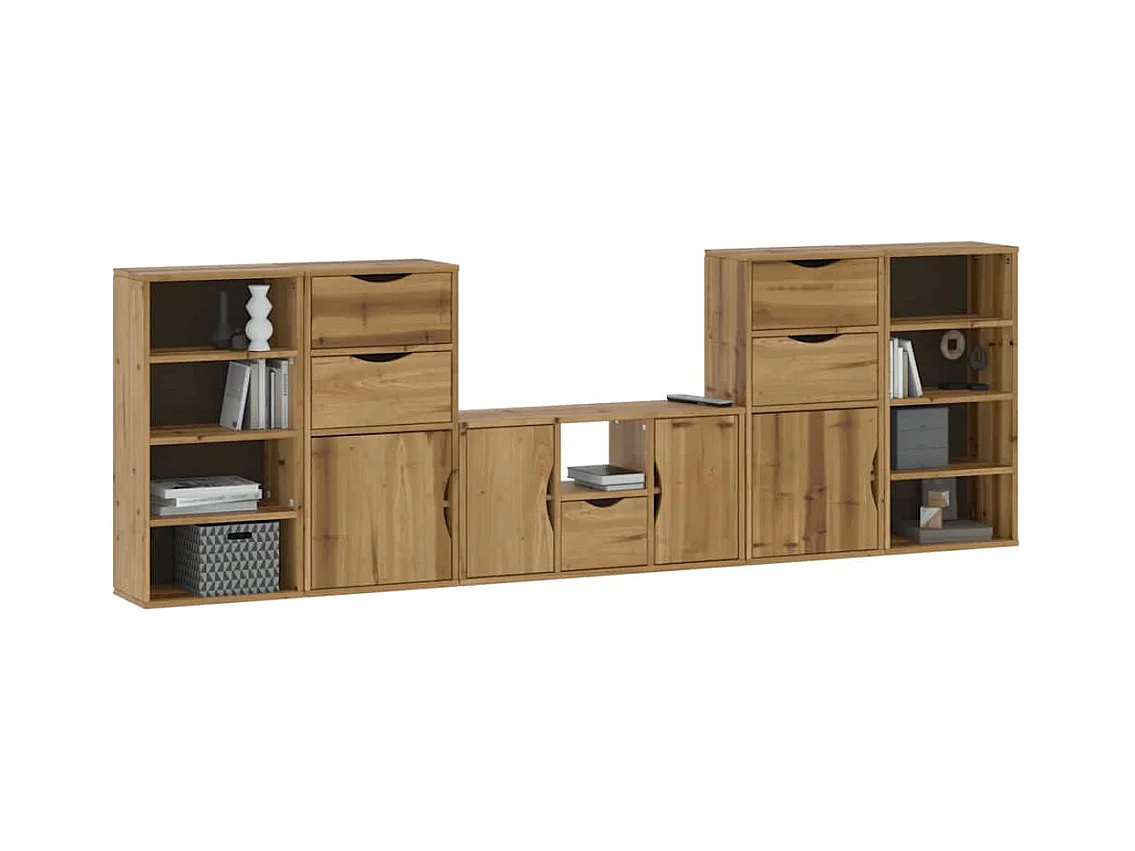Muebles de TV | Gabinetes de TV | Muebles de salón 5 uds. con almacenaje "ODDA" madera maciza pino