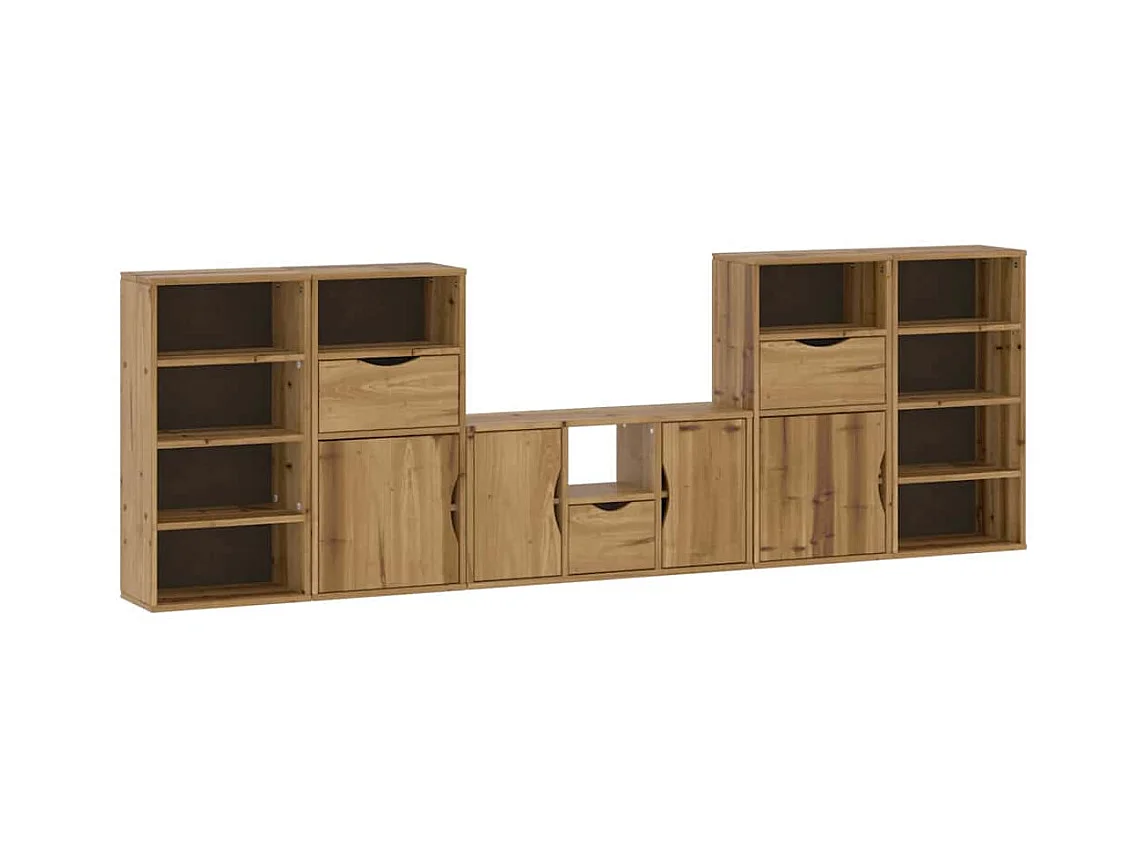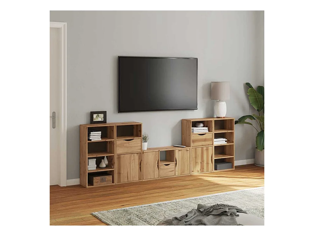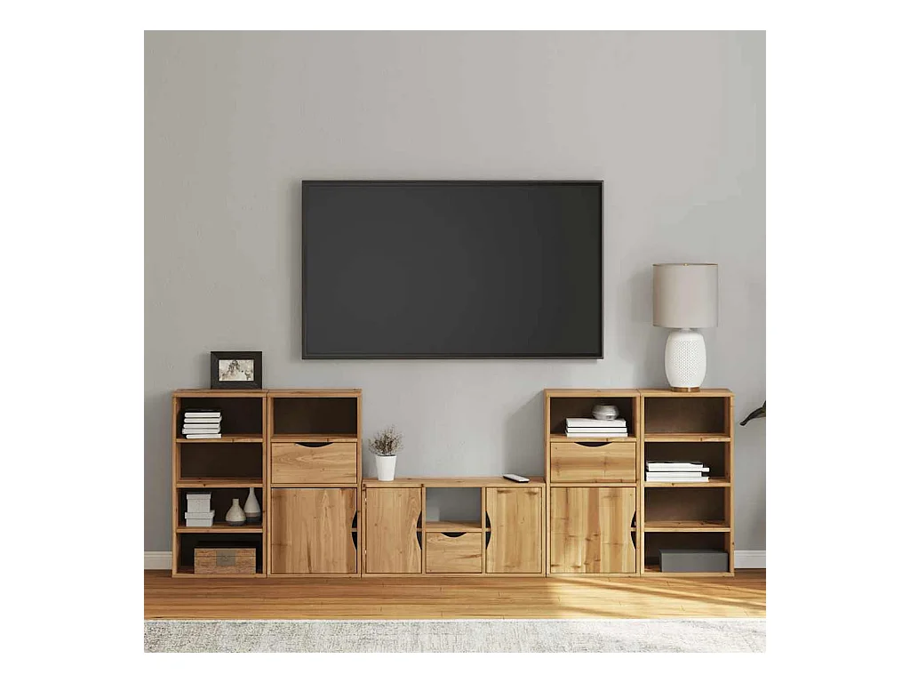 Muebles de TV | Gabinetes de TV | Muebles de salón 5 uds. con almacenaje "ODDA" madera maciza pino