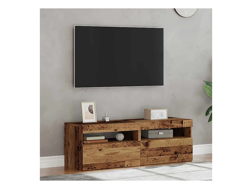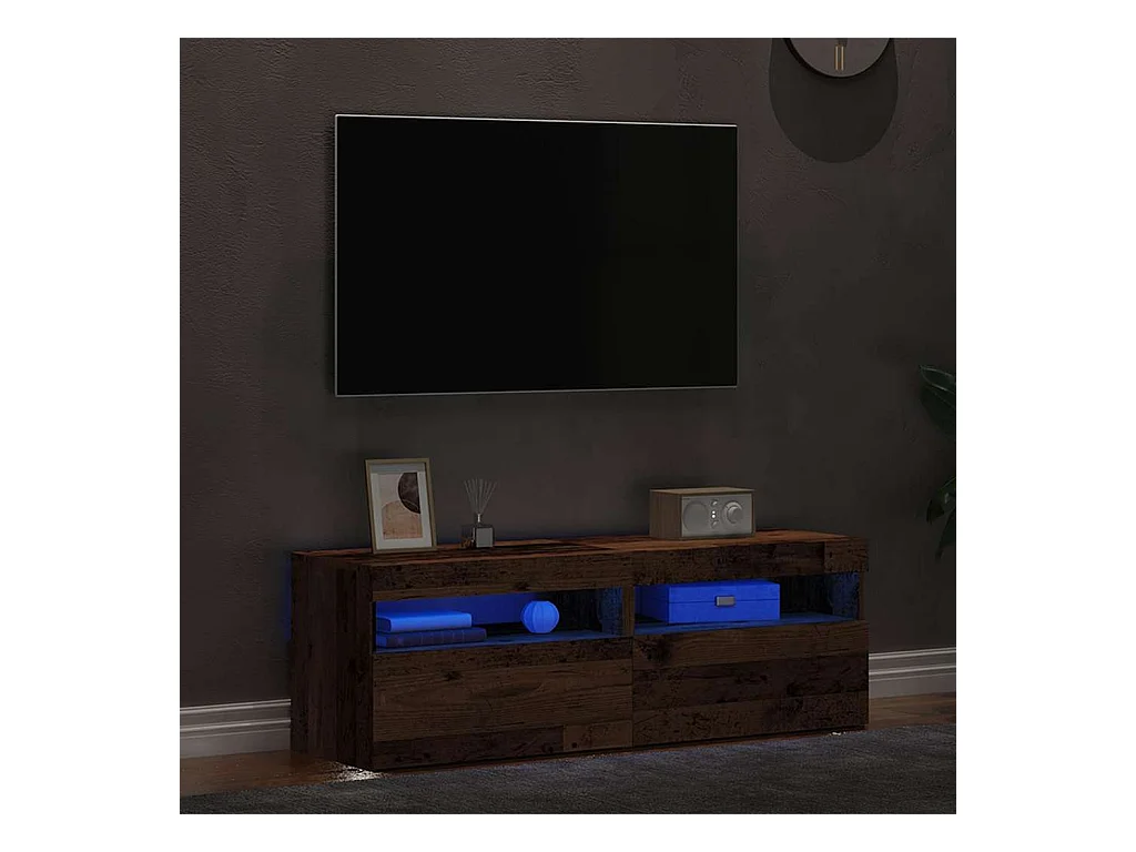Mueble TV | Gabinete de TV | Mueble de salón luces LED madera ingeniería envejecida 60x35x40 cm