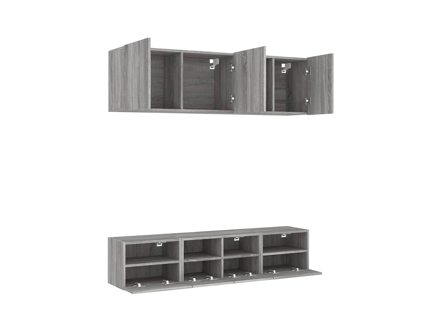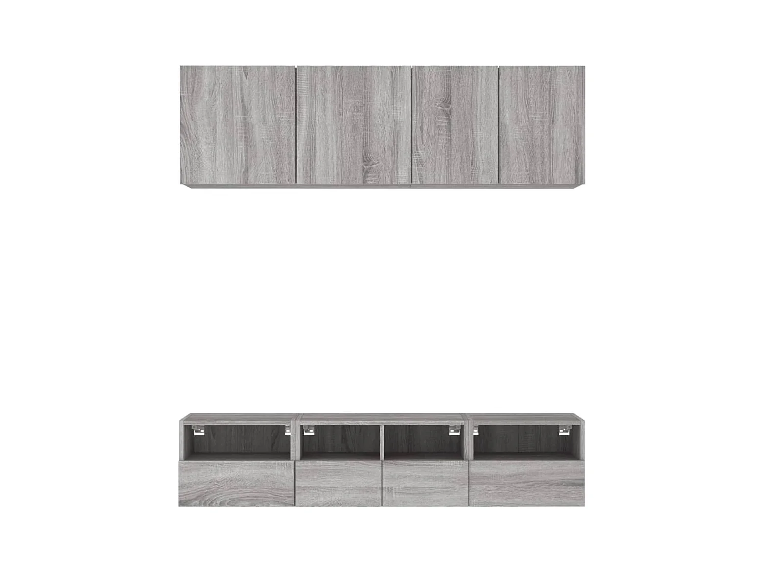 Muebles TV | Gabinetes de TV | Muebles de salón pared con LED 4 pzas madera ingeniería gris Sonoma