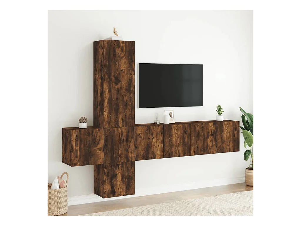 Muebles de TV | Gabinetes de TV | Muebles de salón de pared 5 pzas madera ingeniería roble ahumado