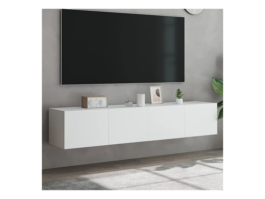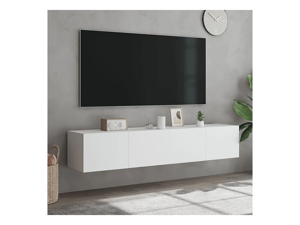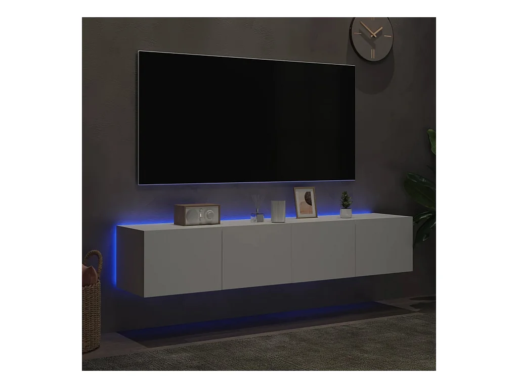 Muebles de TV | Gabinetes de TV | Muebles de salón de pared con luces LED 2 uds blanco 80x35x31 cm