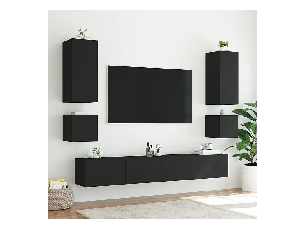 Muebles de TV | Gabinetes de TV | Muebles de salón de pared con luces LED 2 uds negro 40,5x35x40 cm