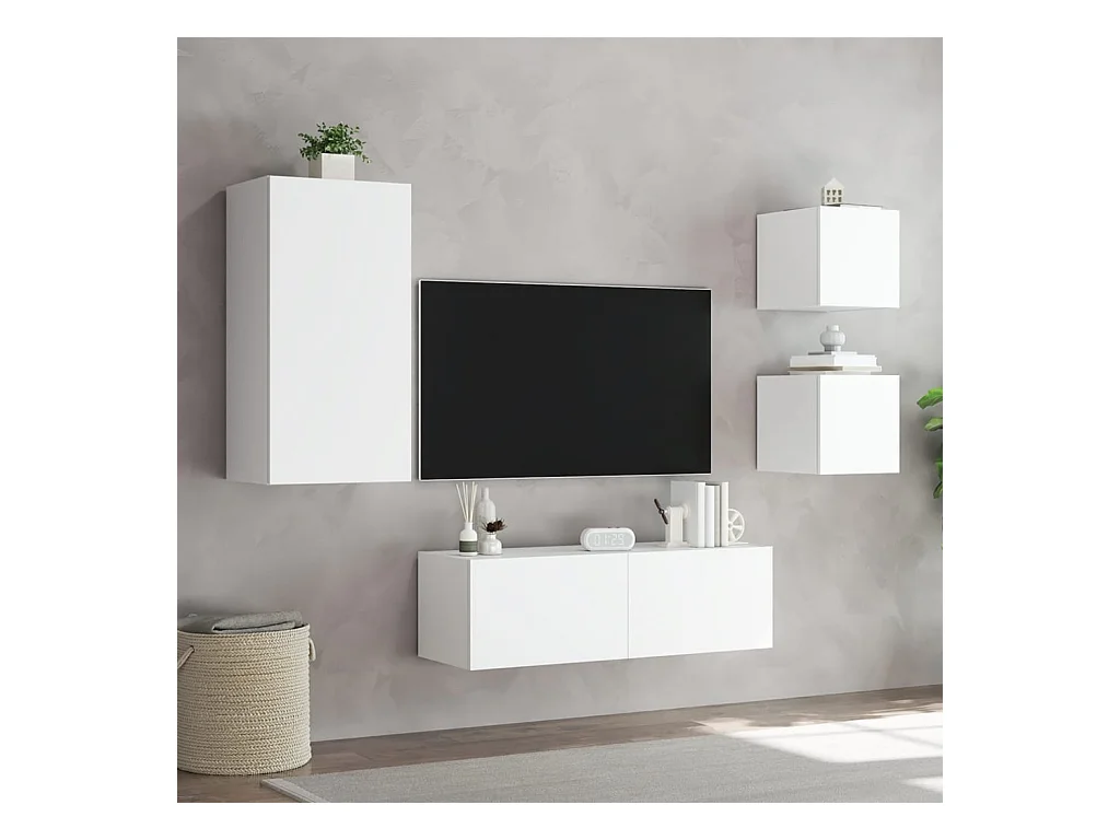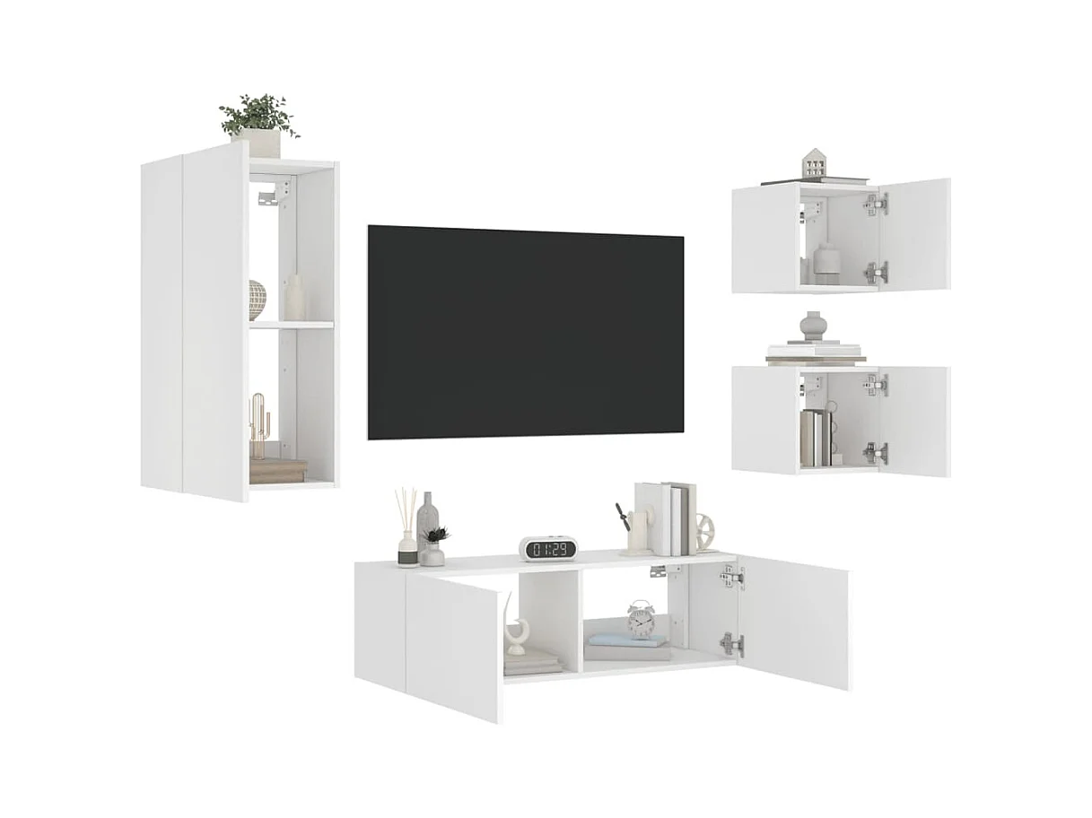 Muebles de TV | Gabinetes de TV | Muebles de salón de pared con luces LED 5 piezas blanco