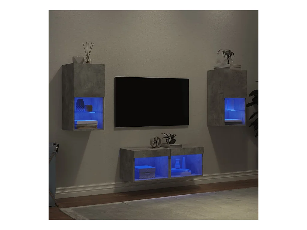 Muebles de TV | Gabinetes de TV | Muebles de salón de pared con luces LED 4 piezas gris hormigón