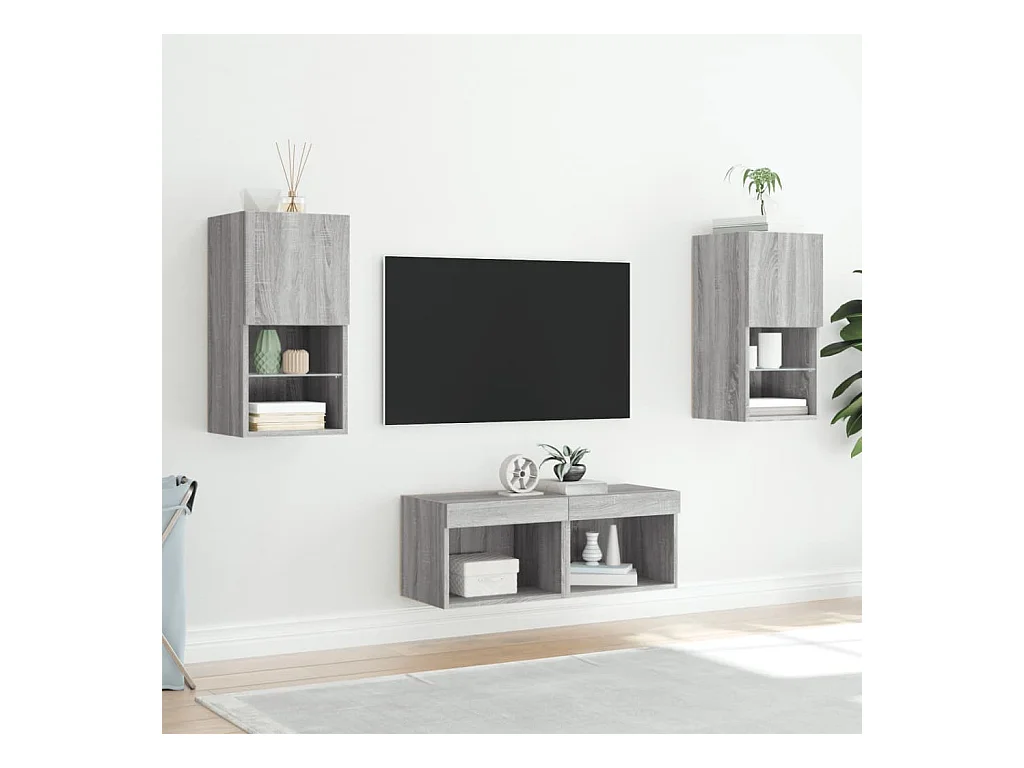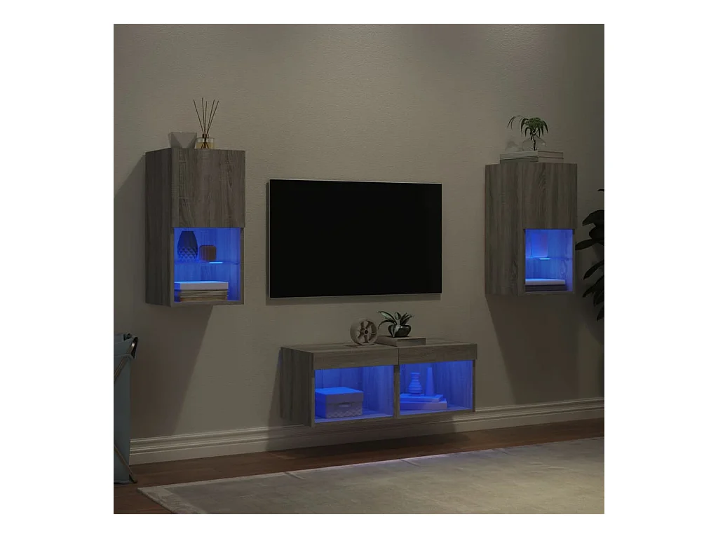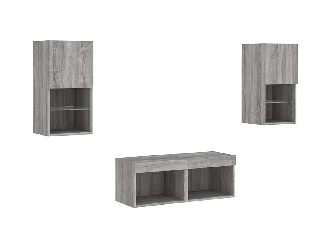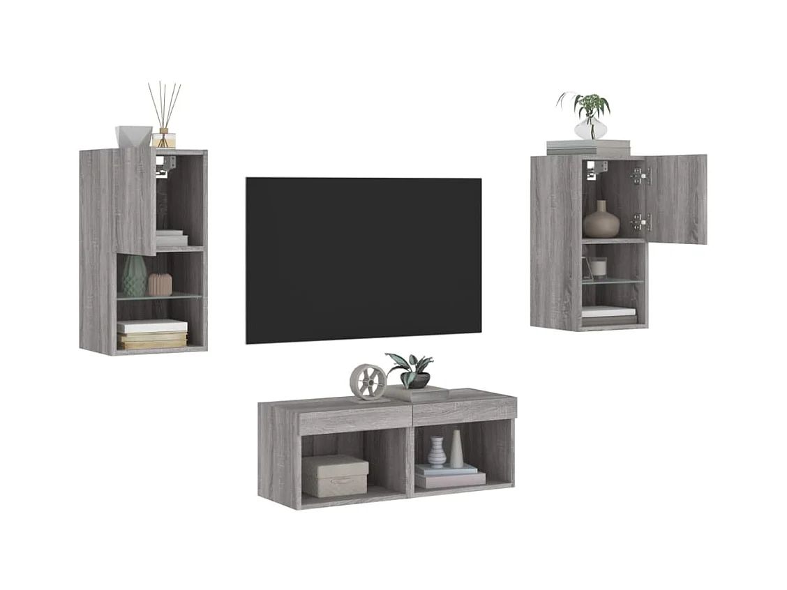 Muebles de TV | Gabinetes de TV | Muebles de salón de pared con luces LED 4 piezas gris Sonoma