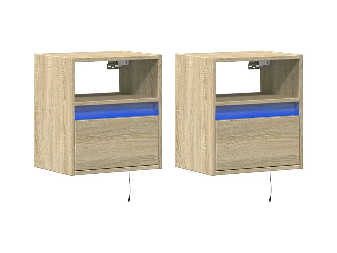 Muebles de TV | Gabinetes de TV | Muebles de salón de pared luces LED 2 uds roble Sonoma 41x31x45 cm