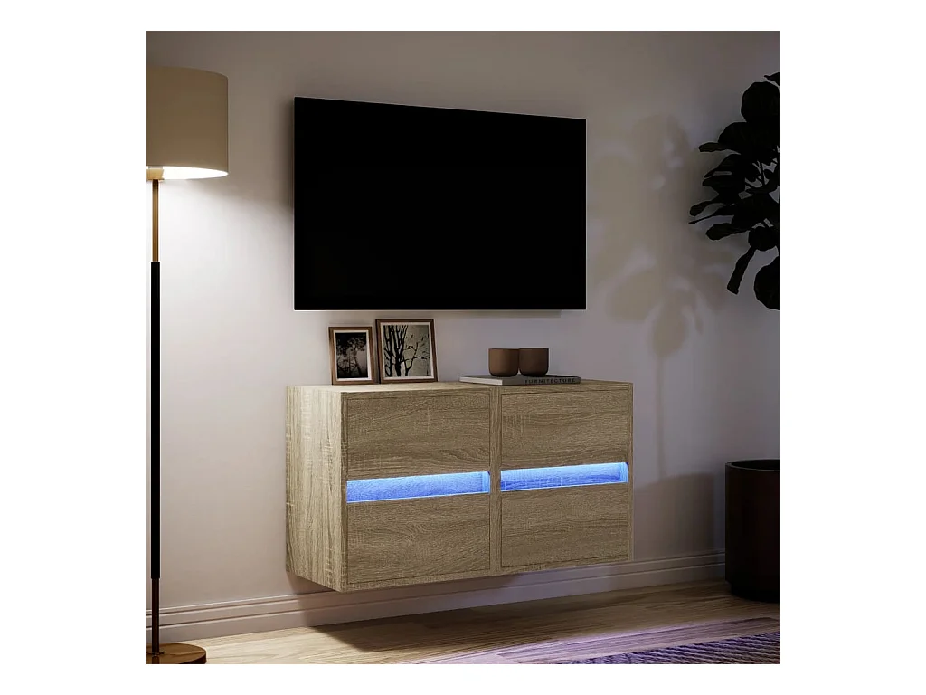 Muebles de TV | Gabinetes de TV | Muebles de salón de pared luces LED 2 uds roble Sonoma 41x31x45 cm