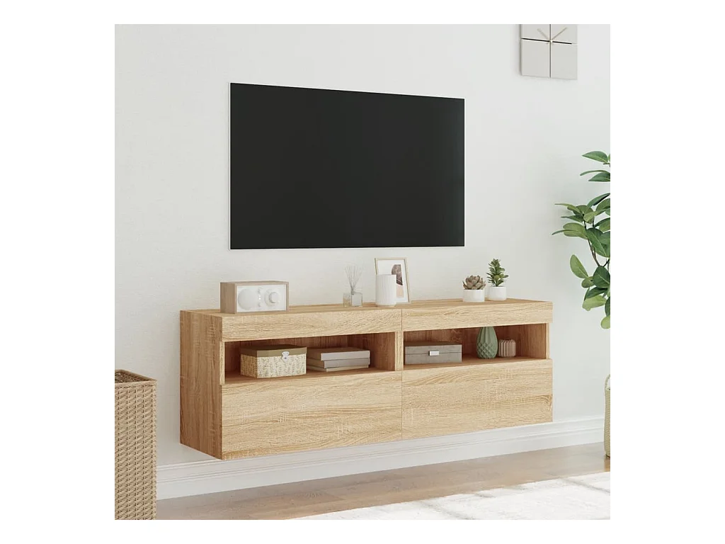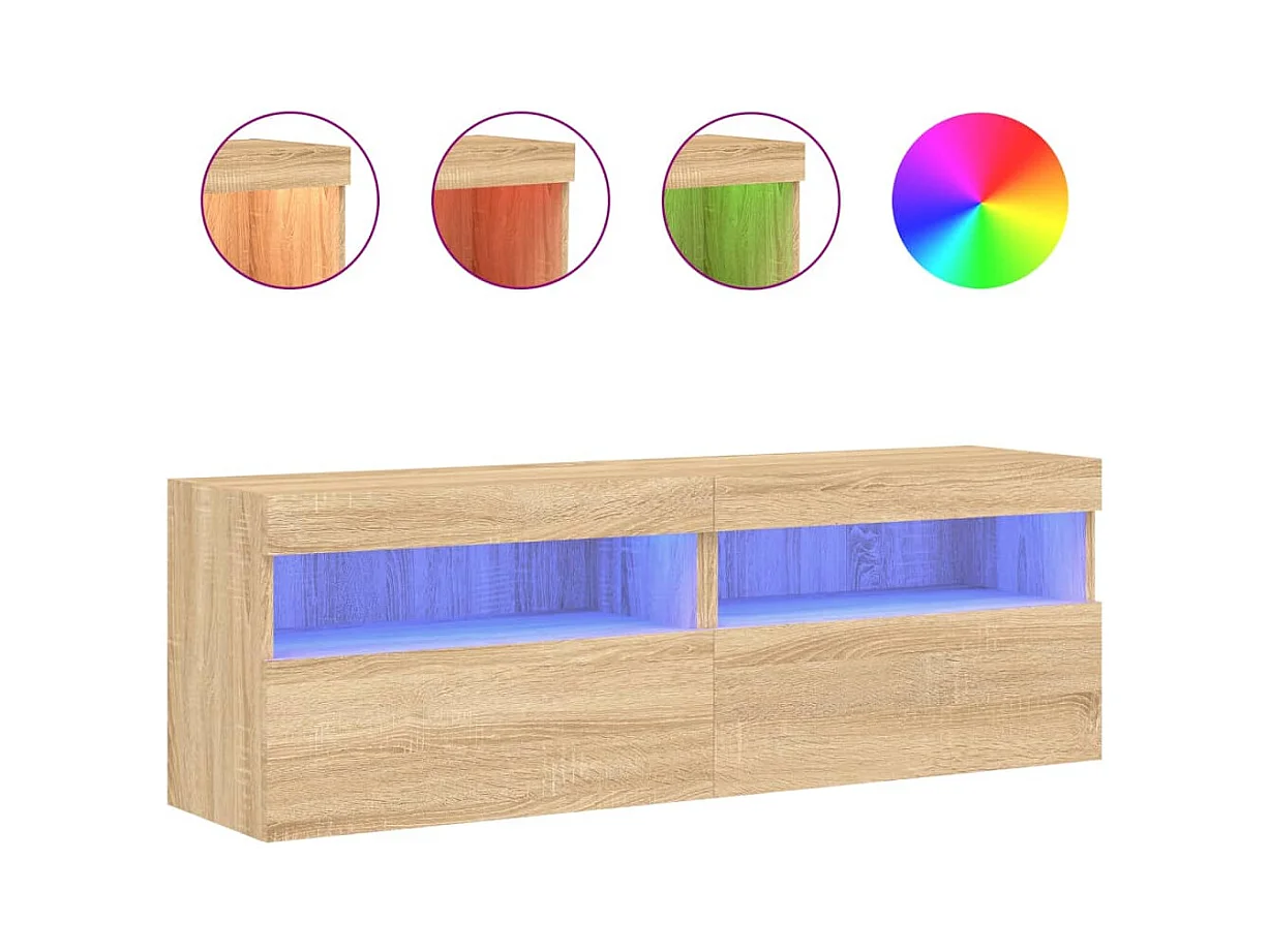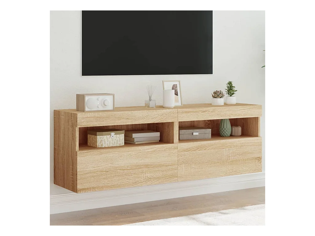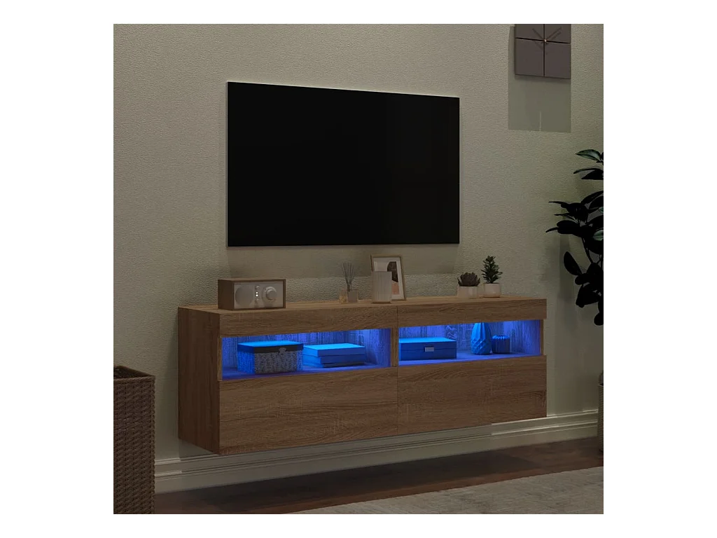 Muebles de TV | Gabinetes de TV | Muebles de salón de pared luces LED 2 uds roble Sonoma 60x30x40 cm