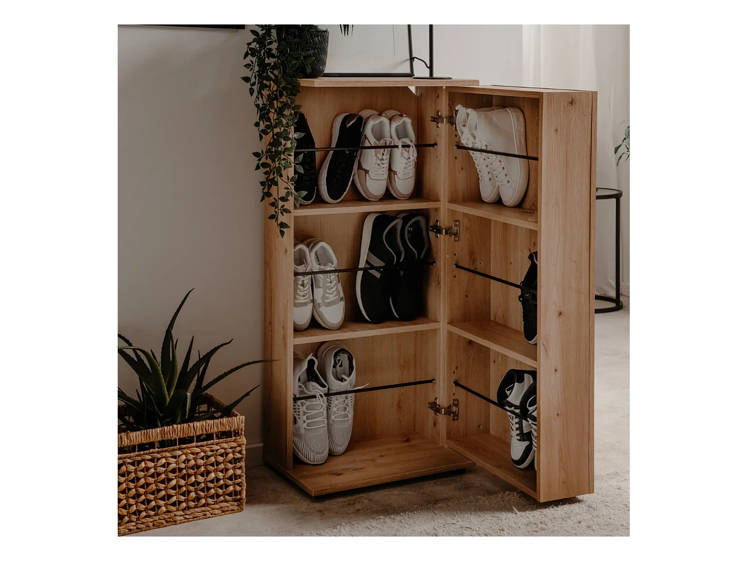 Mueble para Zapatos de Madera LOYA - 8 Almacenamientos Roble Artesanal