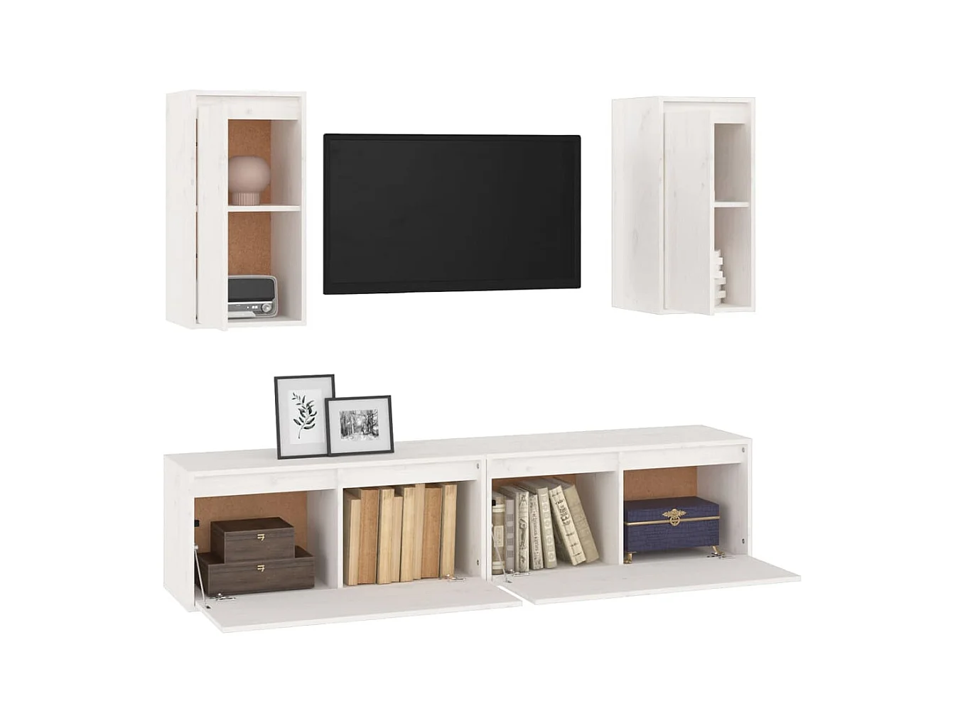 Muebles para TV 4 piezas madera maciza de pino blanco ES99412