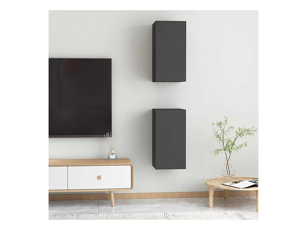 muebles para TV | Gabinetes de TV | Muebles de salón 2 uds contrachapada gris hormigón 30,5x30x60 cm