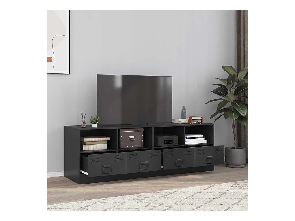 Mueble para TV | Gabinete de TV | Mueble de salón acero laminado en frío negro 202x39x43,5 cm
