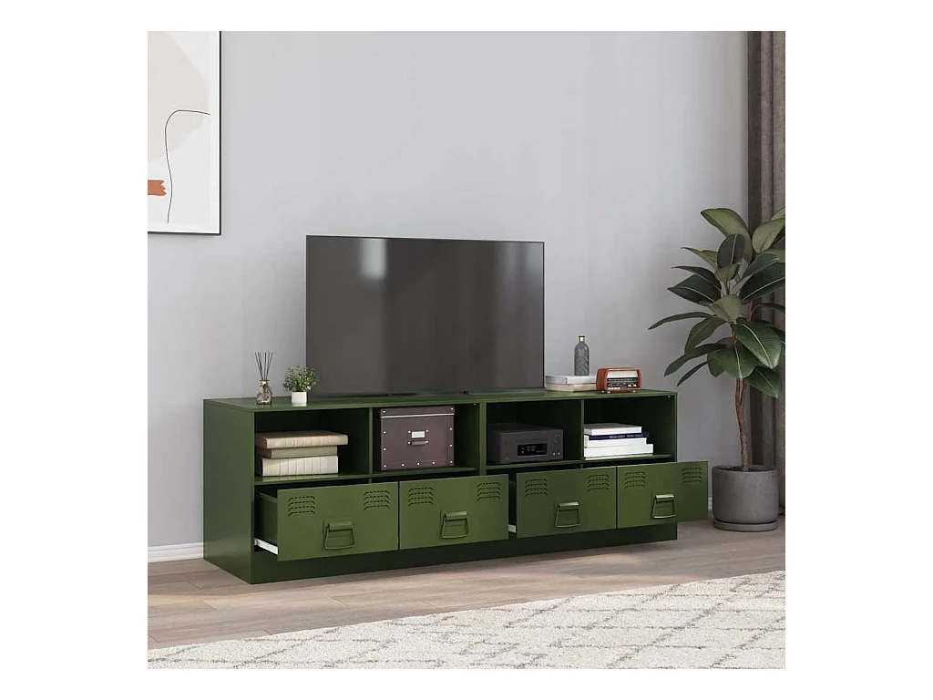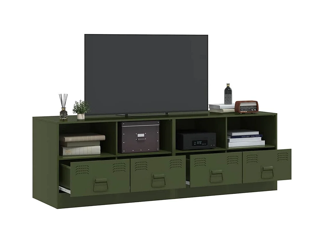 Mueble TV | Gabinete de TV | Mueble de salón acero laminado en frío verde oliva 202x39x43,5 cm