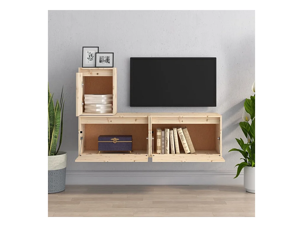 muebles para TV | Gabinetes de TV | Muebles de salón 3 piezas madera maciza de pino