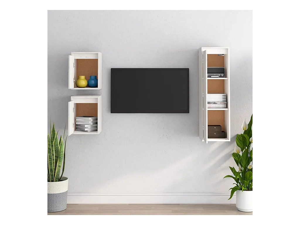 muebles para TV | Gabinetes de TV | Muebles de salón 3 piezas madera maciza de pino blanco