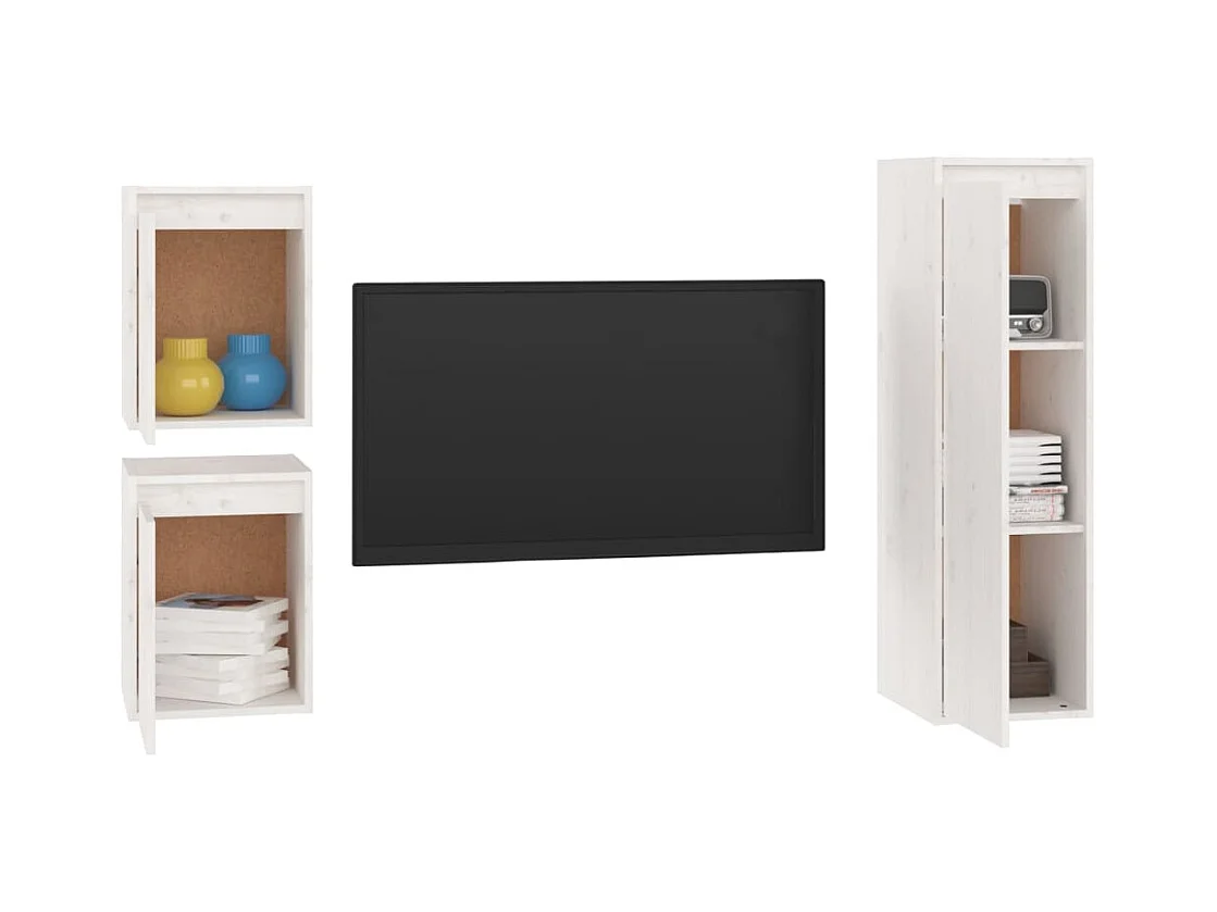 muebles para TV | Gabinetes de TV | Muebles de salón 4 piezas madera maciza de pino blanco