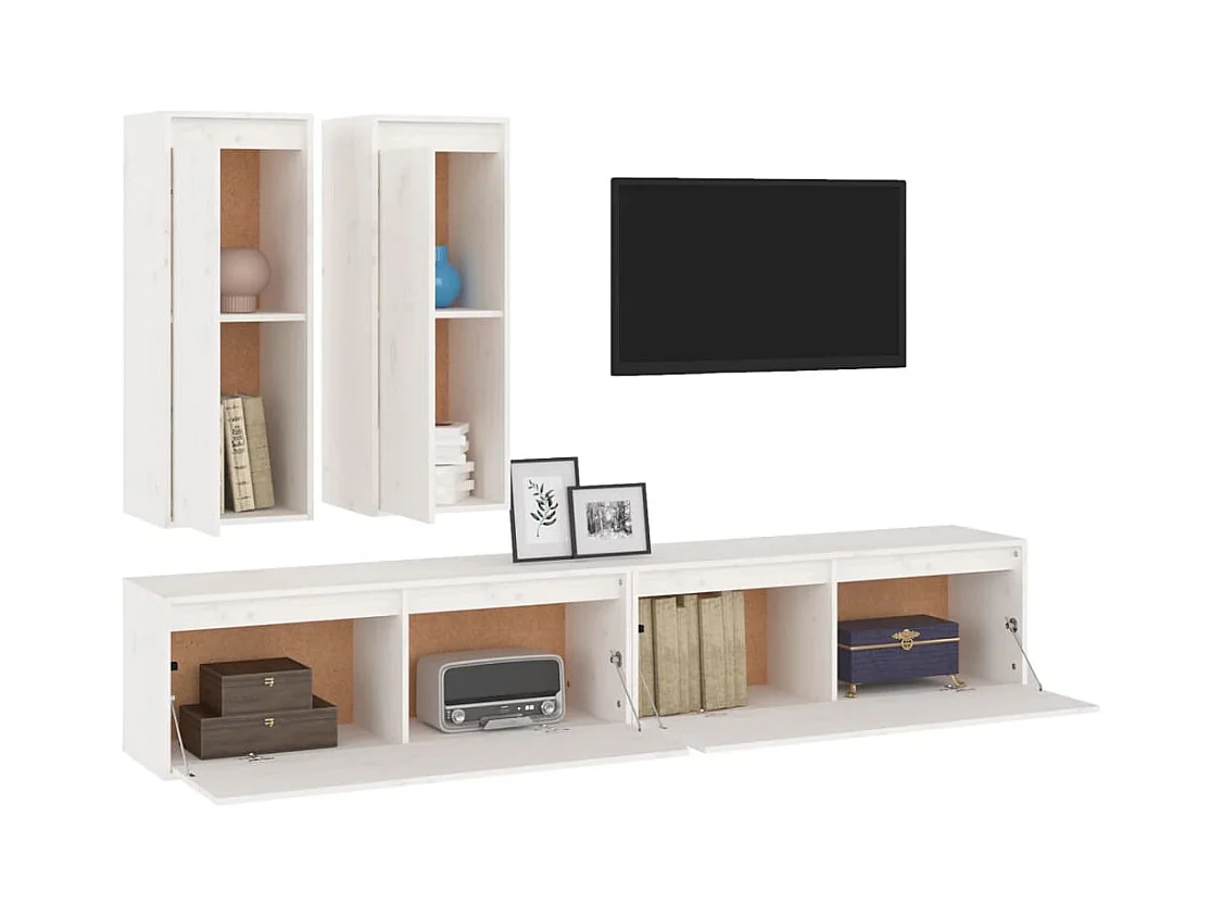 muebles para TV | Gabinetes de TV | Muebles de salón 4 piezas madera maciza de pino blanco