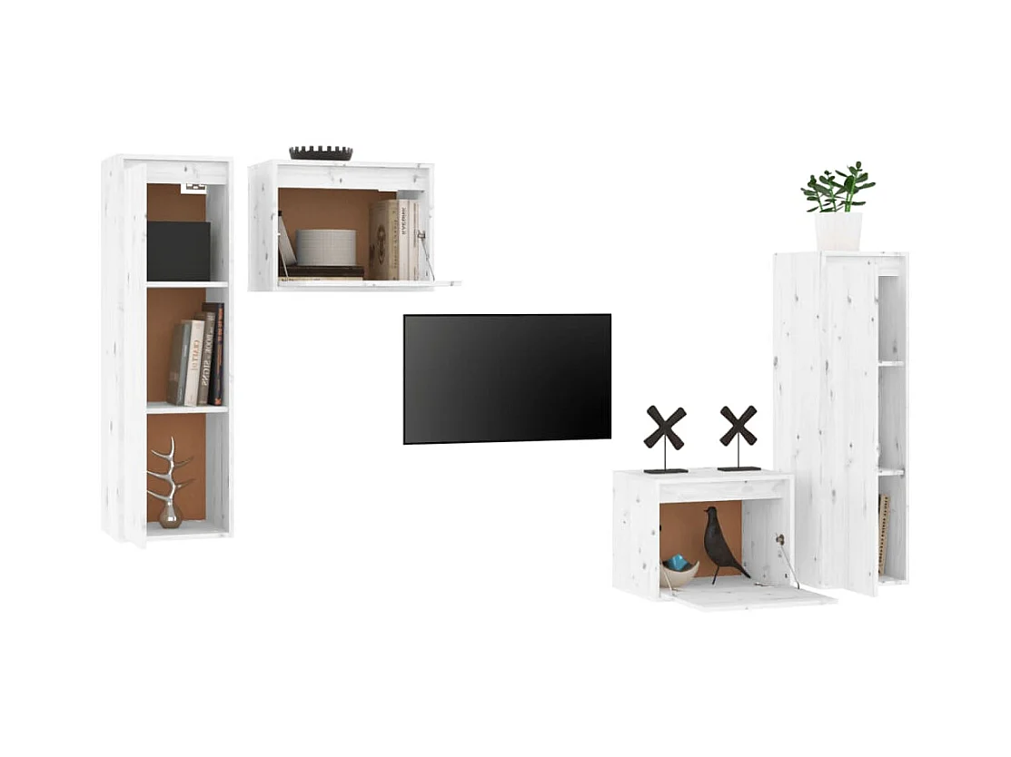 muebles para TV | Gabinetes de TV | Muebles de salón 4 piezas madera maciza de pino blanco
