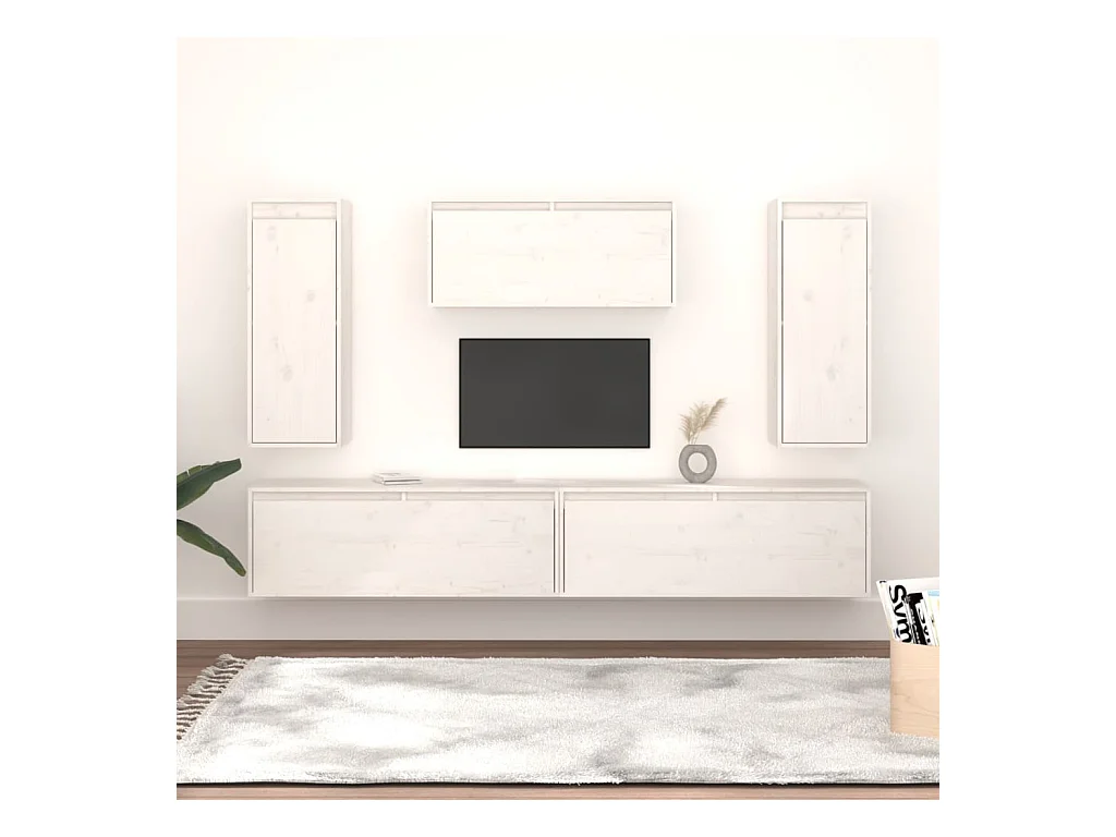 muebles para TV | Gabinetes de TV | Muebles de salón 4 piezas madera maciza de pino blanco