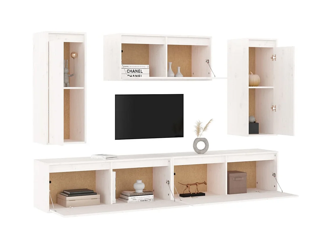 muebles para TV | Gabinetes de TV | Muebles de salón 5 piezas madera maciza de pino blanco