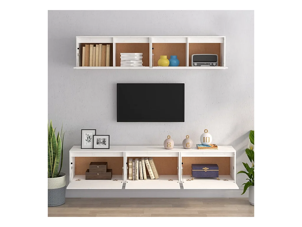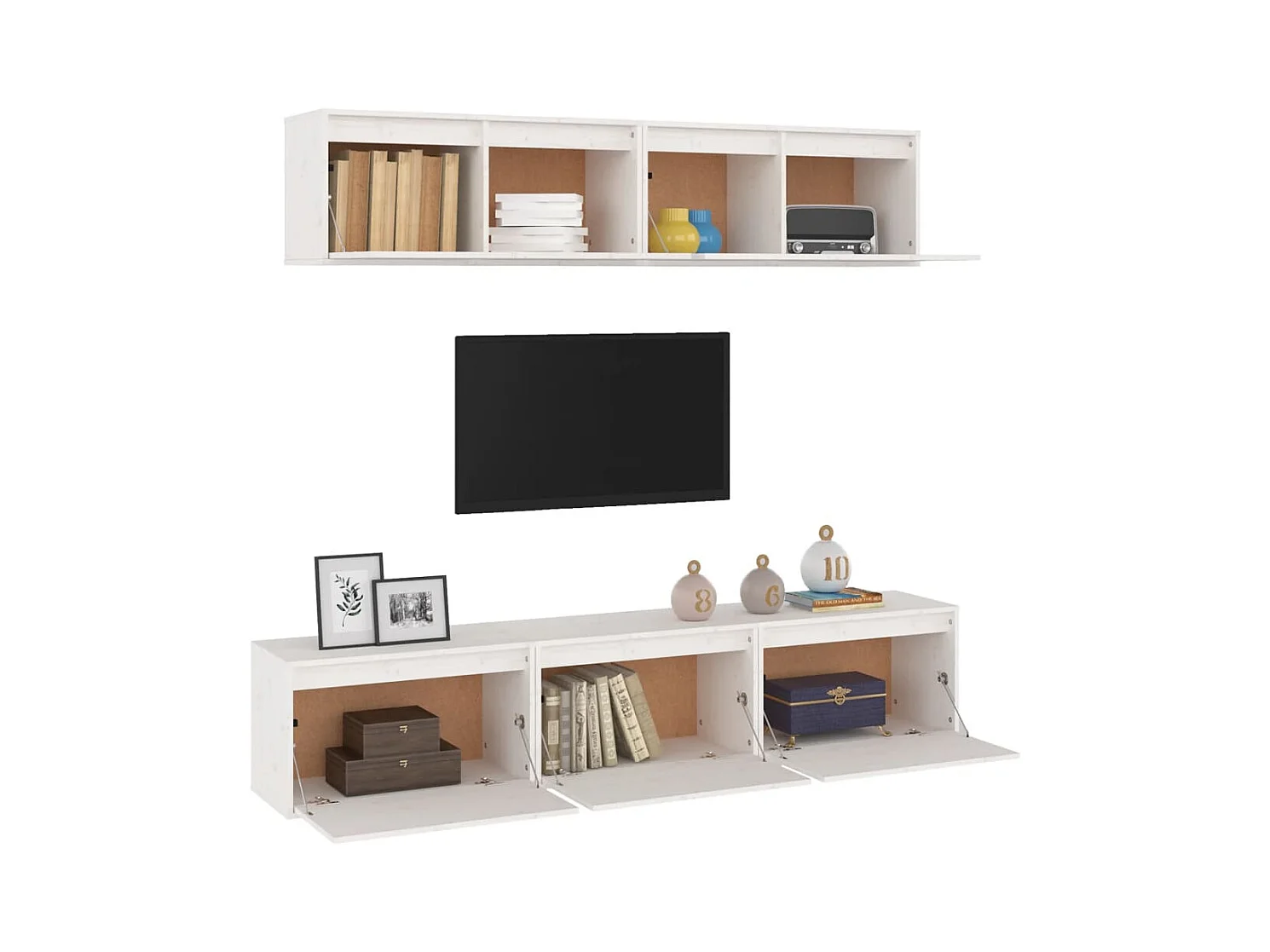 muebles para TV | Gabinetes de TV | Muebles de salón 4 piezas madera maciza de pino blanco