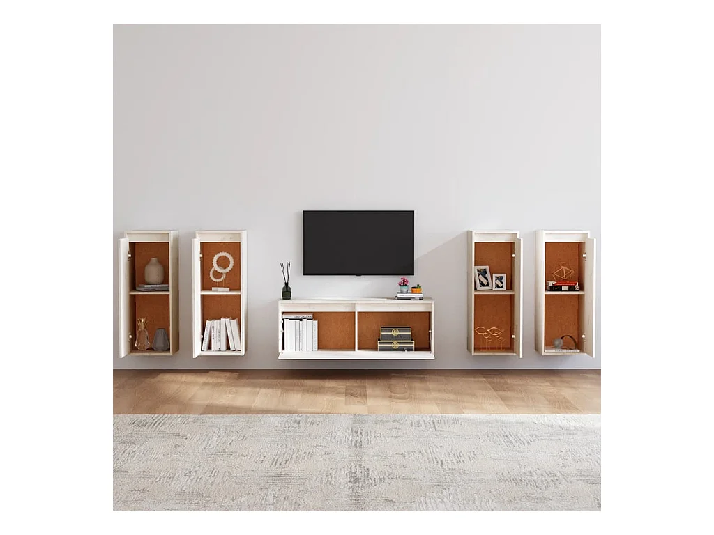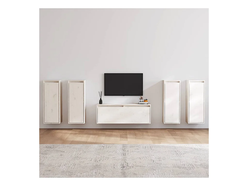 muebles para TV | Gabinetes de TV | Muebles de salón 5 piezas madera maciza de pino blanco