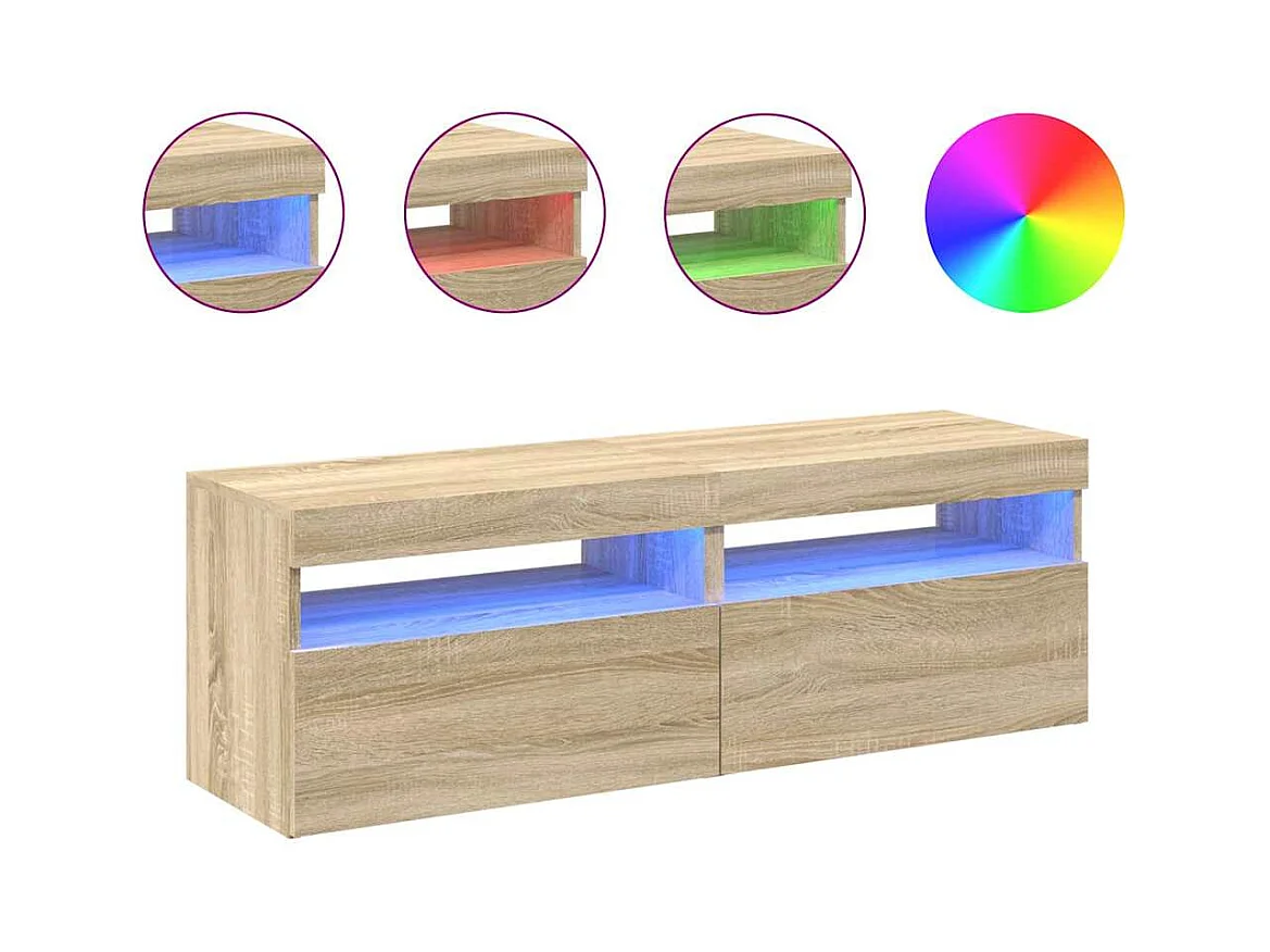 Mueble de TV | Mueble de salón de pared con luces LED roble Sonoma 60x35x41 cm