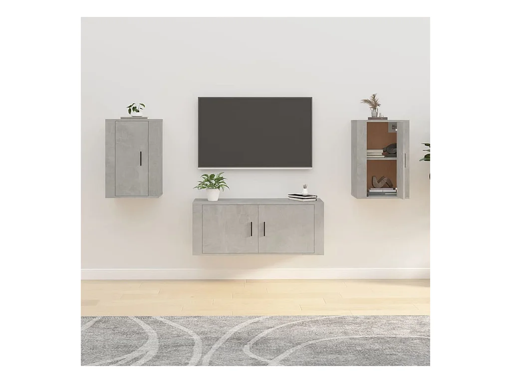 Set de muebles para TV | Gabinetes de TV | Muebles de salón 3 pzas madera contrachapada gris Sonoma