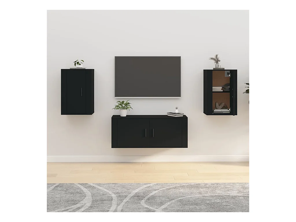 Mueble para TV | Gabinete de TV | Mueble de salón de pared negro 40x34,5x60 cm