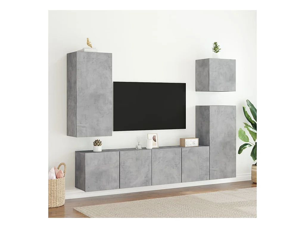 Set de muebles de TV | Gabinetes de TV | Muebles de salón 5 pzas madera contrachapada gris hormigón