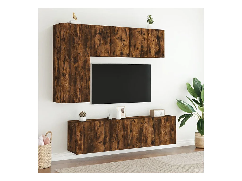 muebles para TV | Gabinetes de TV | Muebles de salón de pared 2 unidades roble ahumado 60x30x41 cm