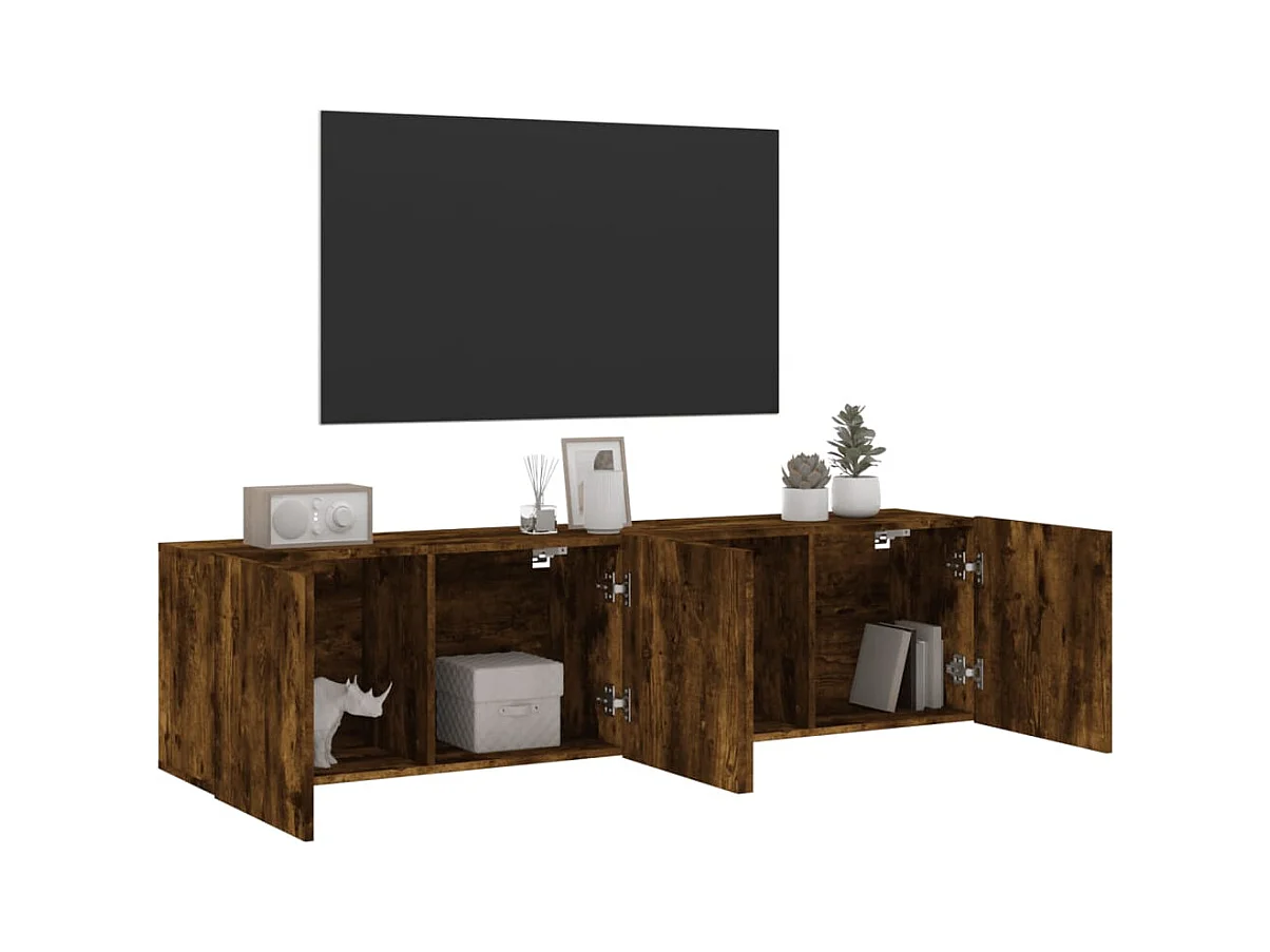 muebles para TV | Gabinetes de TV | Muebles de salón de pared 2 unidades roble ahumado 80x30x41 cm