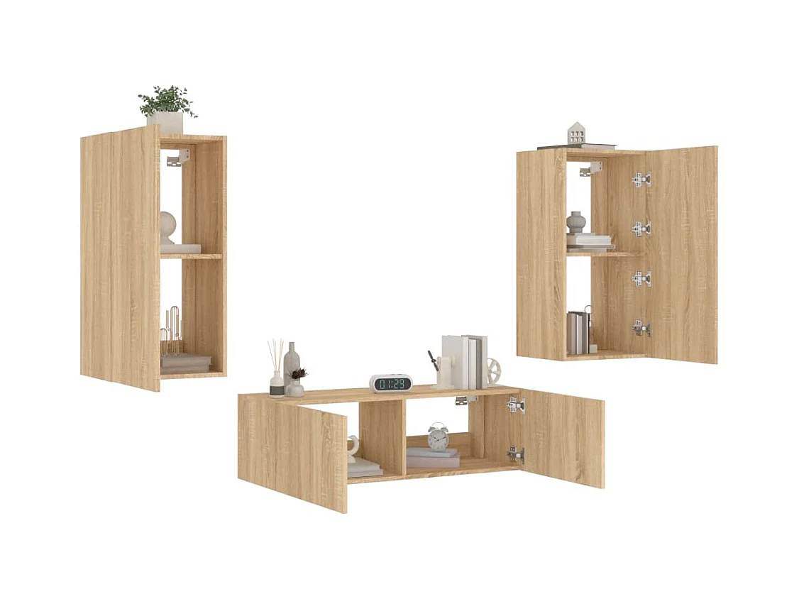 Muebles TV de pared con luces LED 3 piezas roble Sonoma ES53205