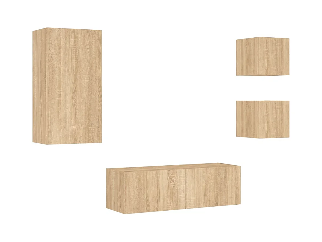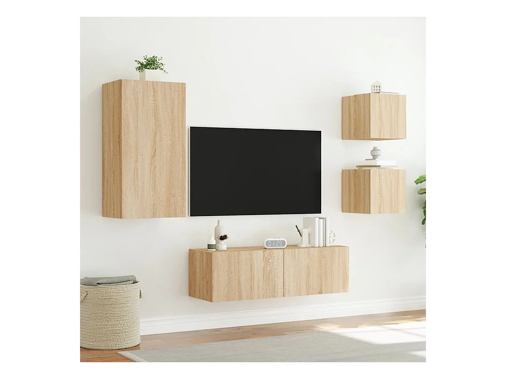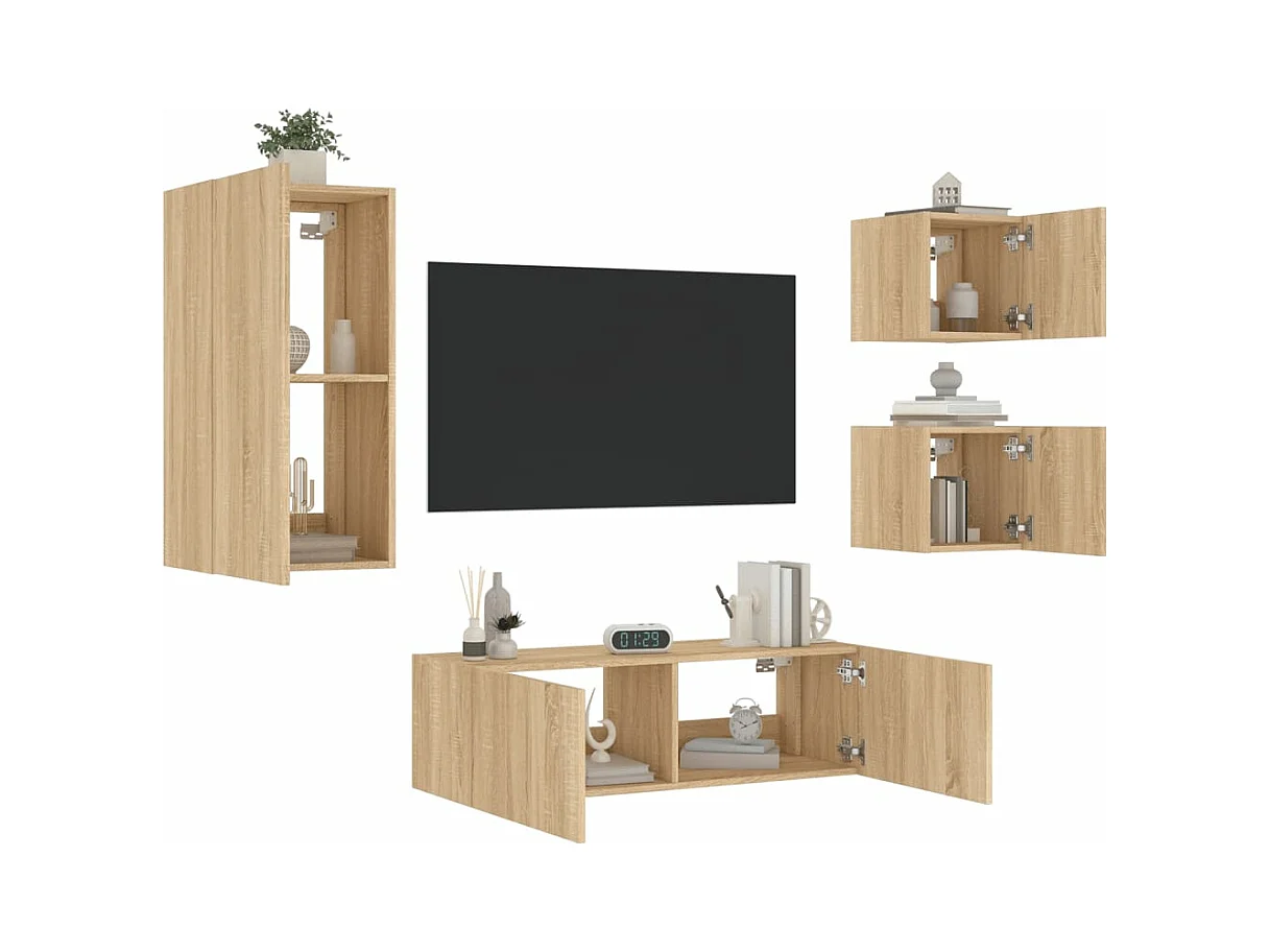 Muebles TV de pared con luces LED 5 piezas roble Sonoma ES69836